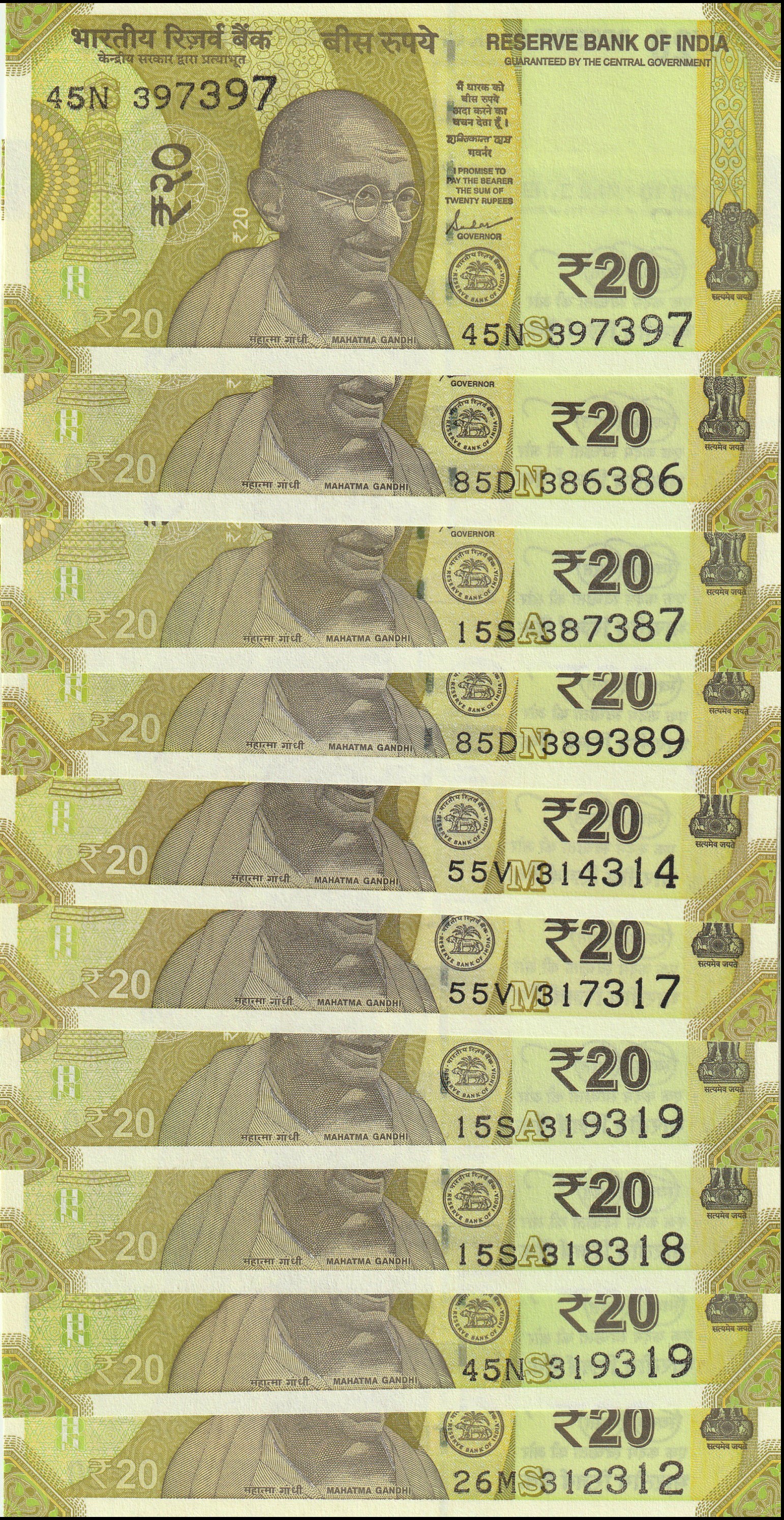 India 20 Rupees Governor Shaktikanta Das Very Fine Banknote (-06)
