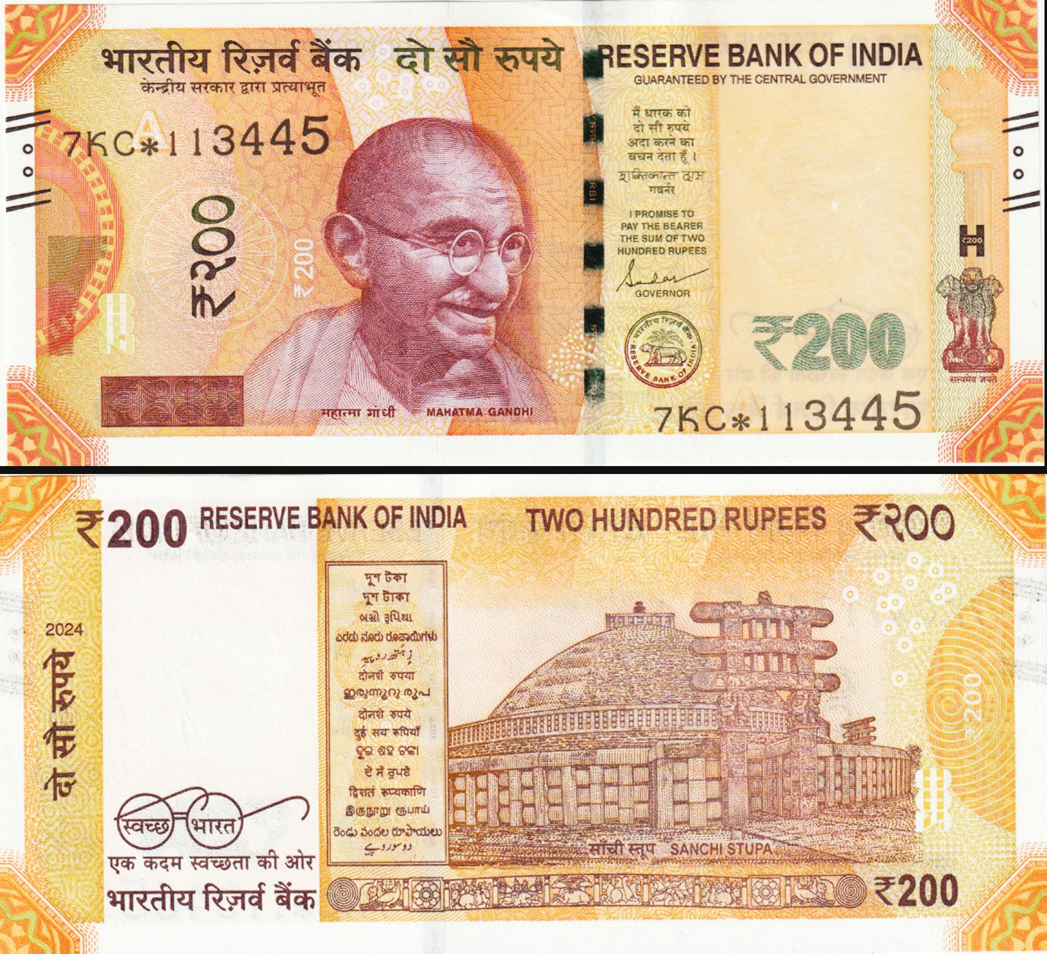 India 200 Rupees 2024 Shaktikanta Das UNC Star Banknote