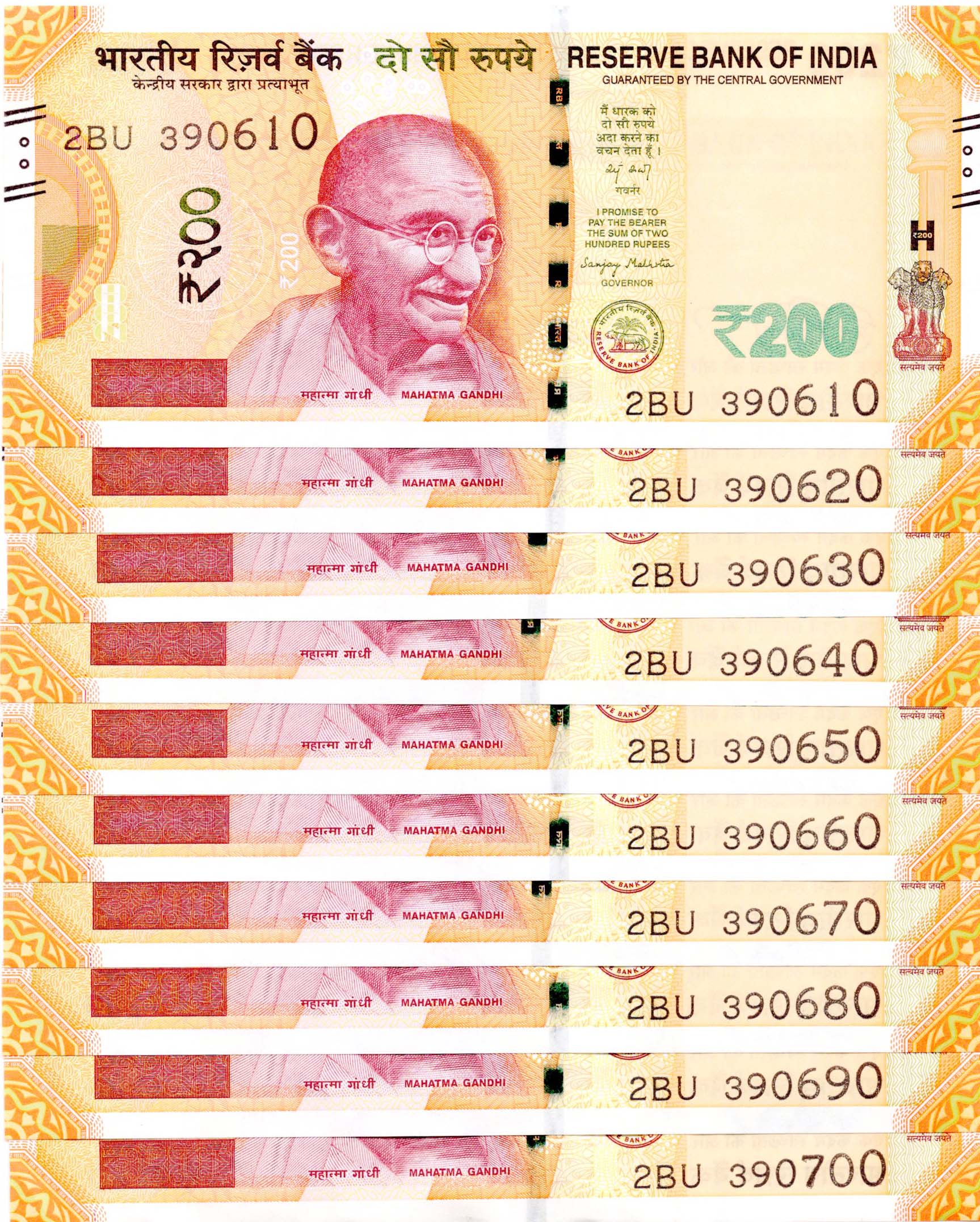 India 200 Rupees Fine Banknote (No : 390610 - 390700) Year : 2025