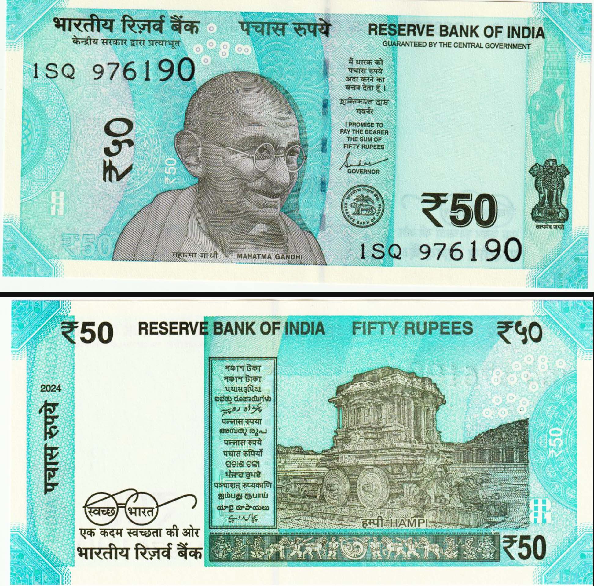 India 50 Rupees – Circulated Indian 2024 UNC Banknote