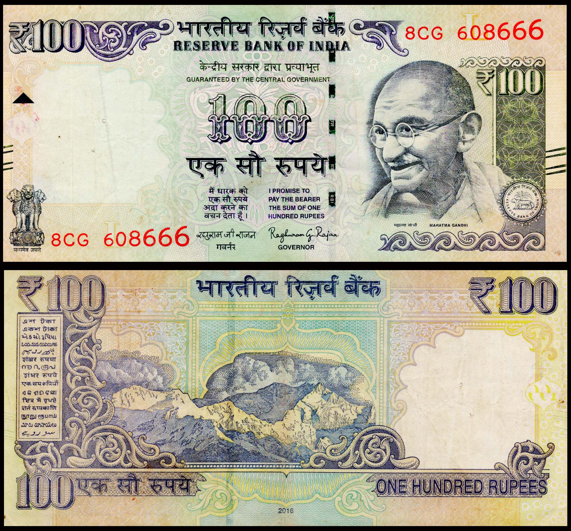 India 100 Rupees Governor Raghuram G. Rajan 2016 Used Banknote