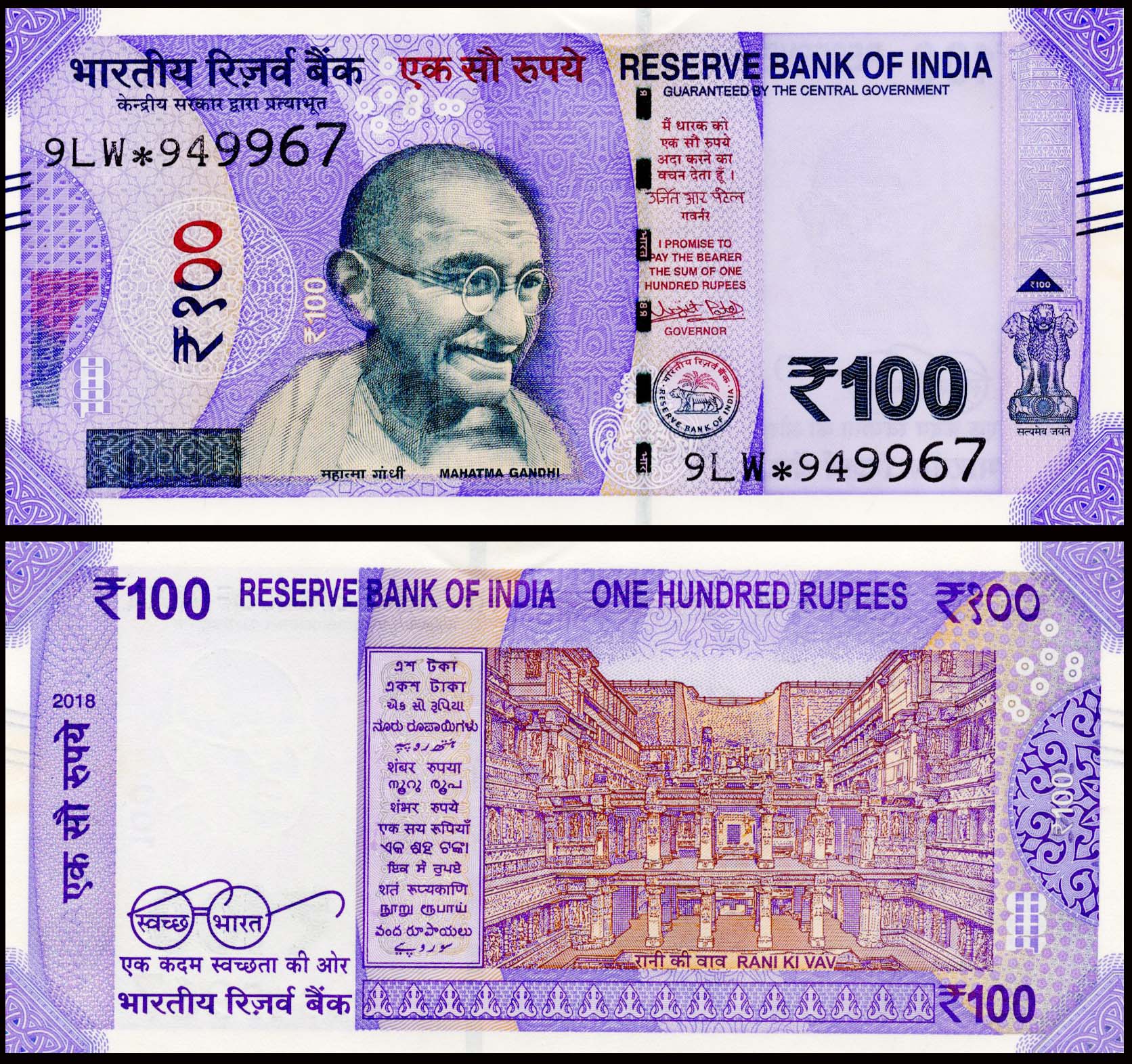India 100 Rupees Governor Urjit Patel Used ⭐ Banknote