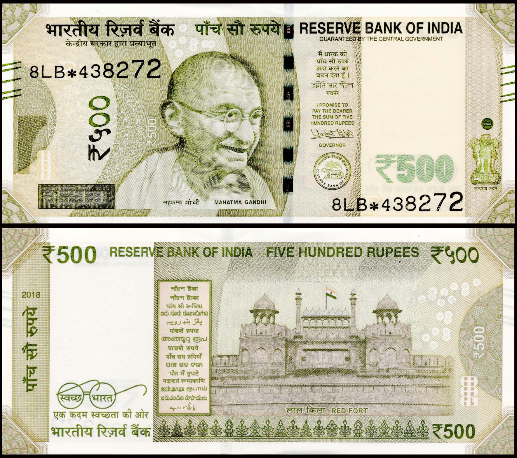 India 500 Rupees Governor Urjit Patel Used ⭐ Banknote