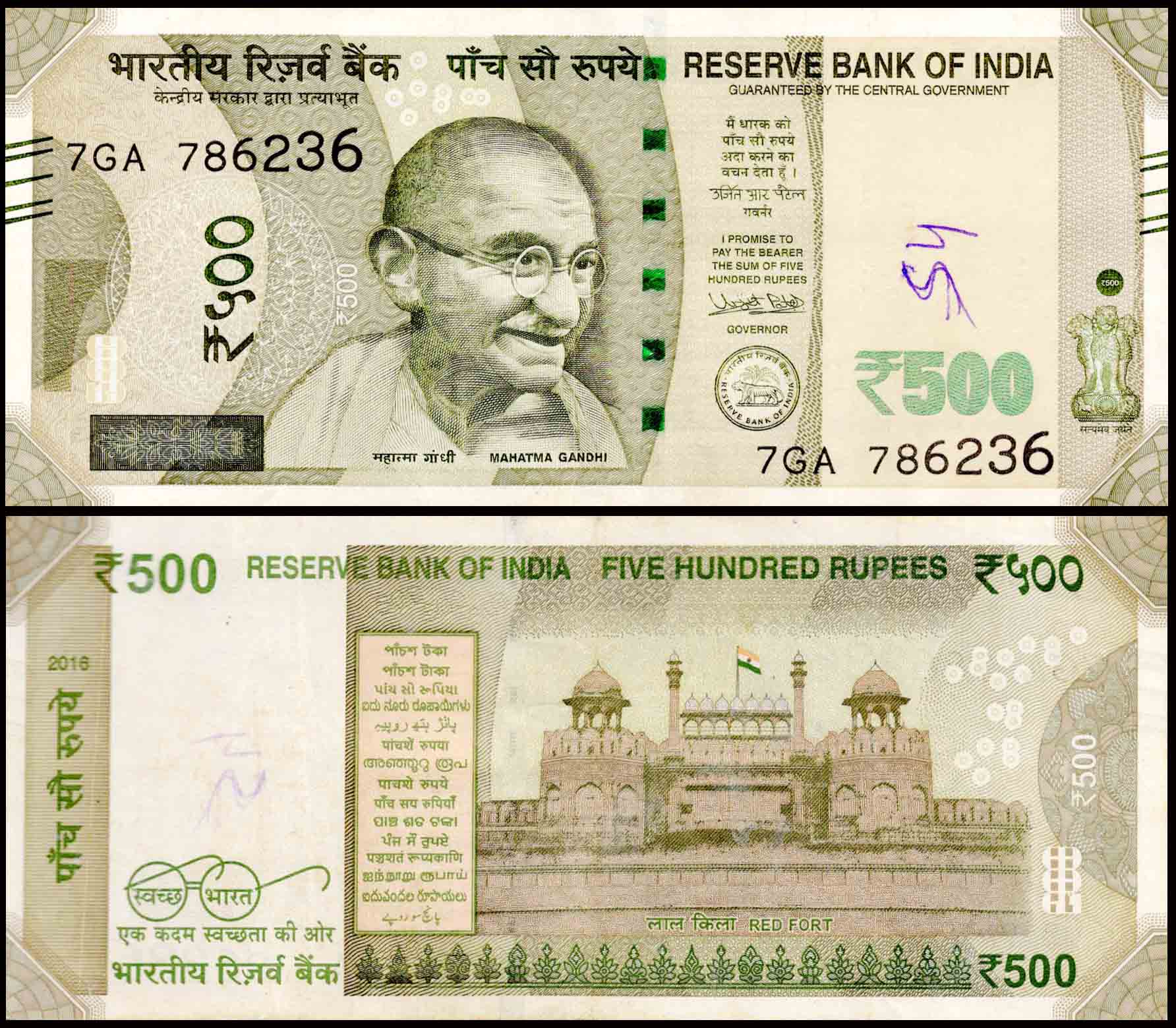 India 500 Rupees Governor Urjit Patel Used Banknote ( NO : 786 )