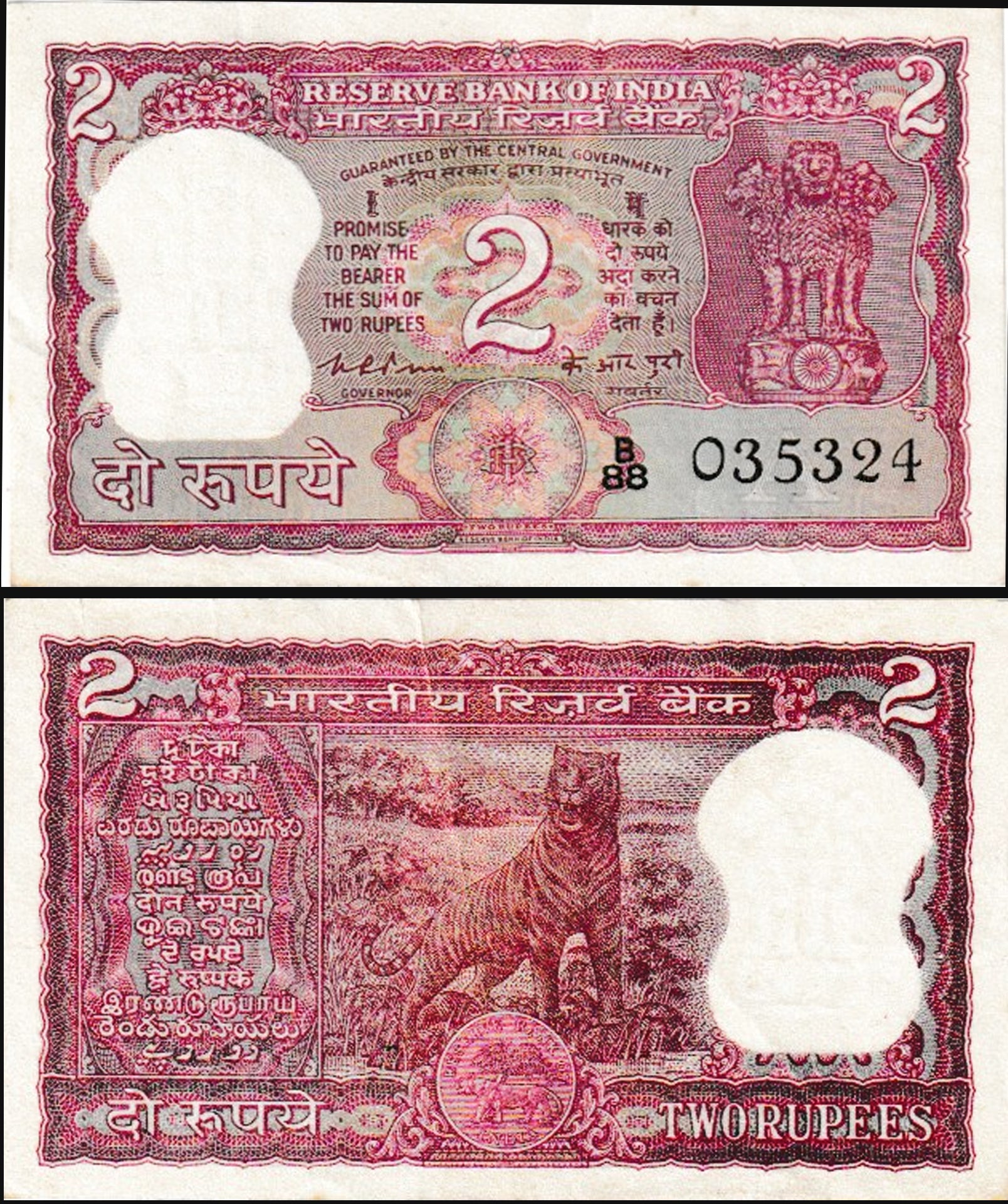 India Banknote Signature Series Signed by K. R. Puri Inset B Used Banknote.