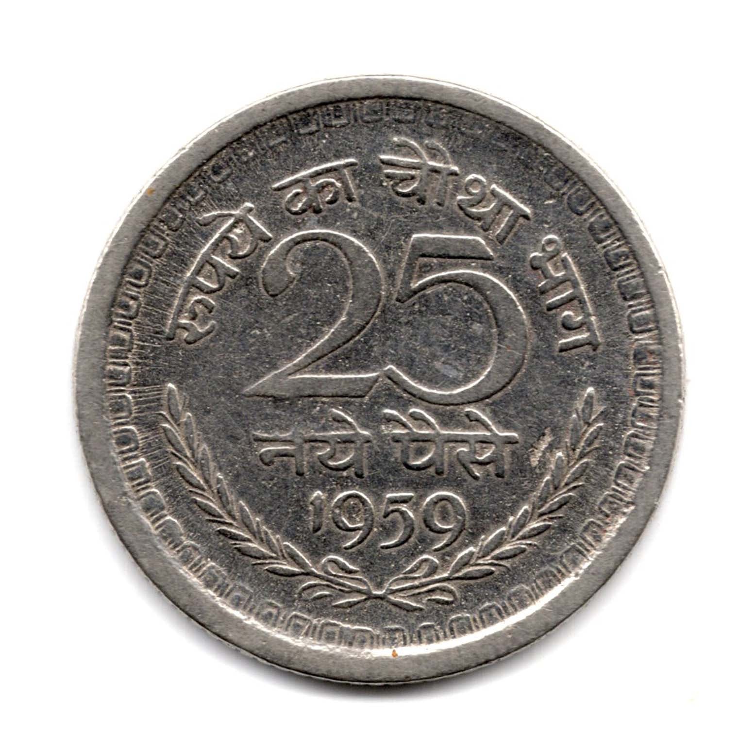 India 25 Paise 1959 Used Coin (Kolkata Mint )