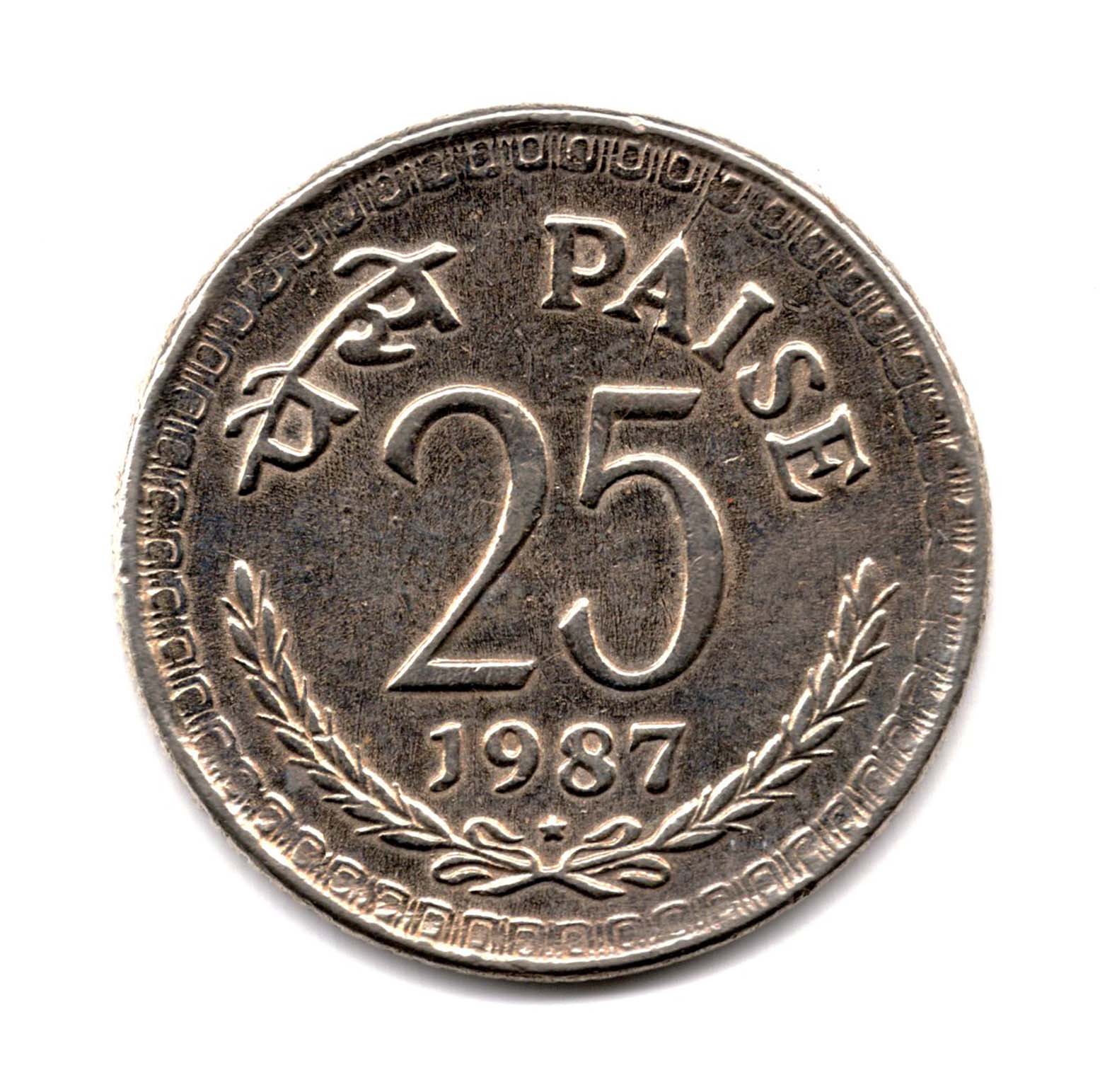 India 25 Paise 1987 Used Coin (Hyderabad ⭐Mint )