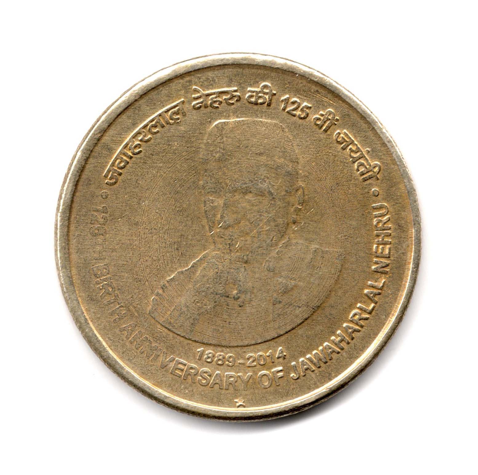 India 5 Rupees 125th Birth Anniversary of Jawaharlal Nehru Used Coin