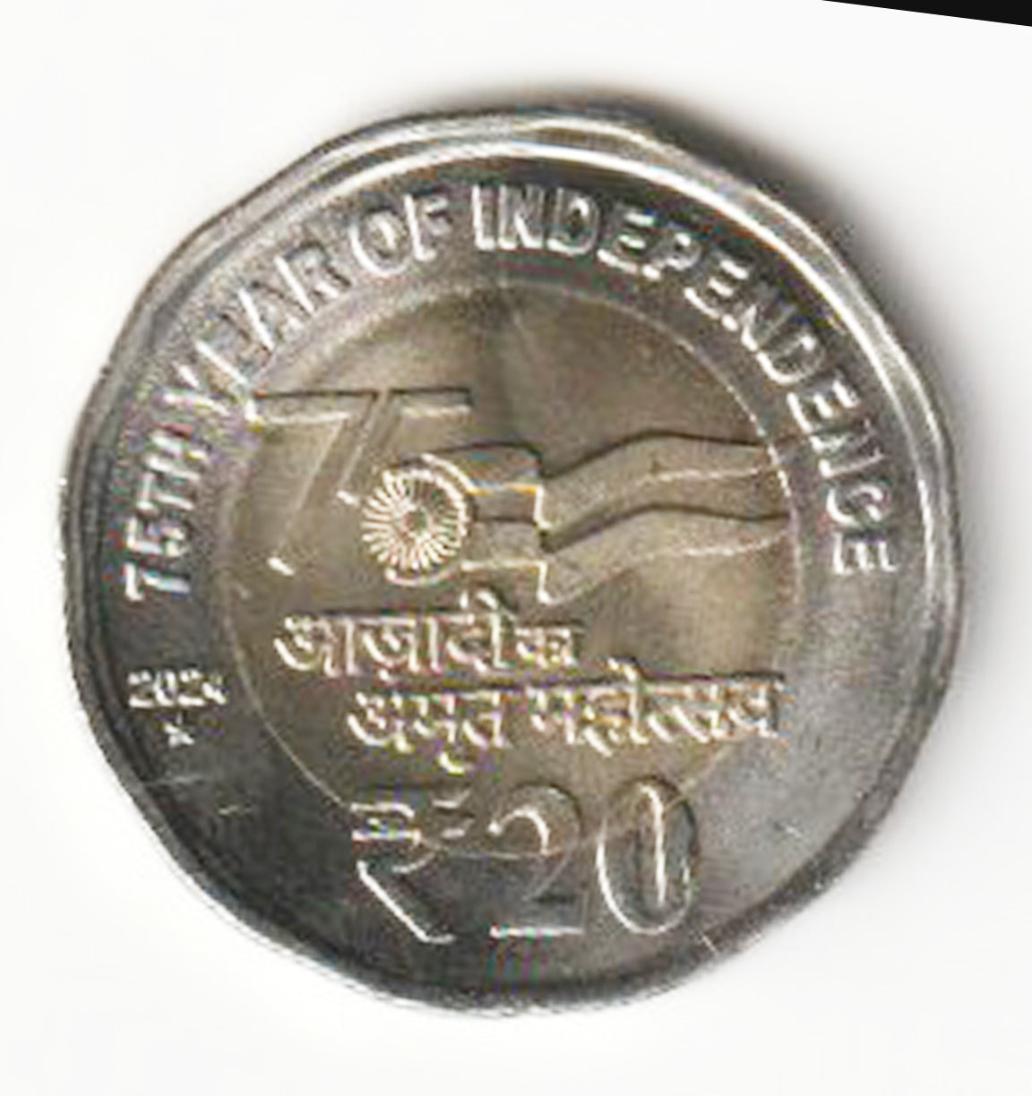 Indian 20 Rupees 75th Years of Independence 2024 ( Hyderabad Mint) Used Coin
