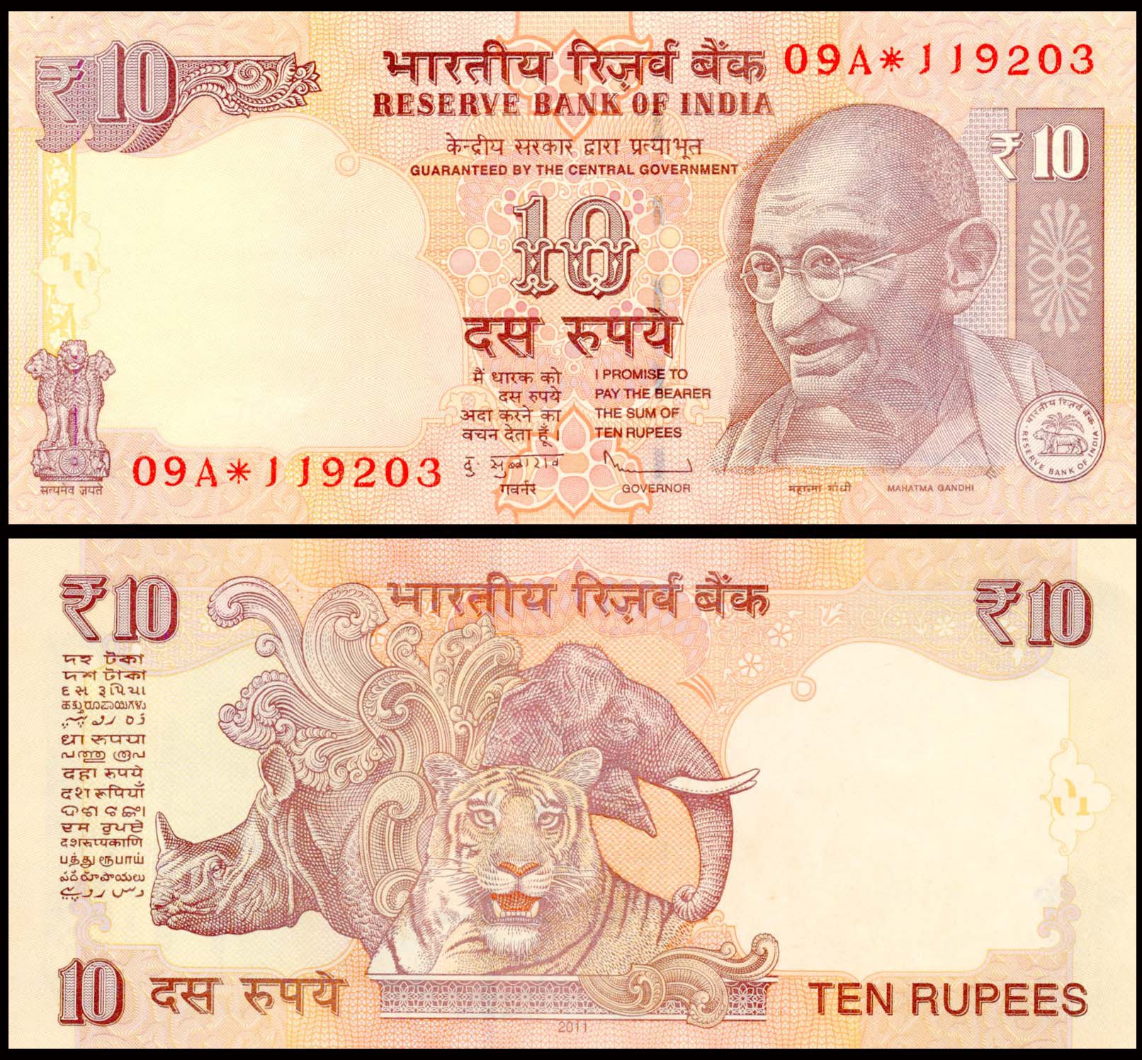 India 10 Rupees Governor Duvvuri Subbarao 0 9A * Fine (Star⭐) Banknote