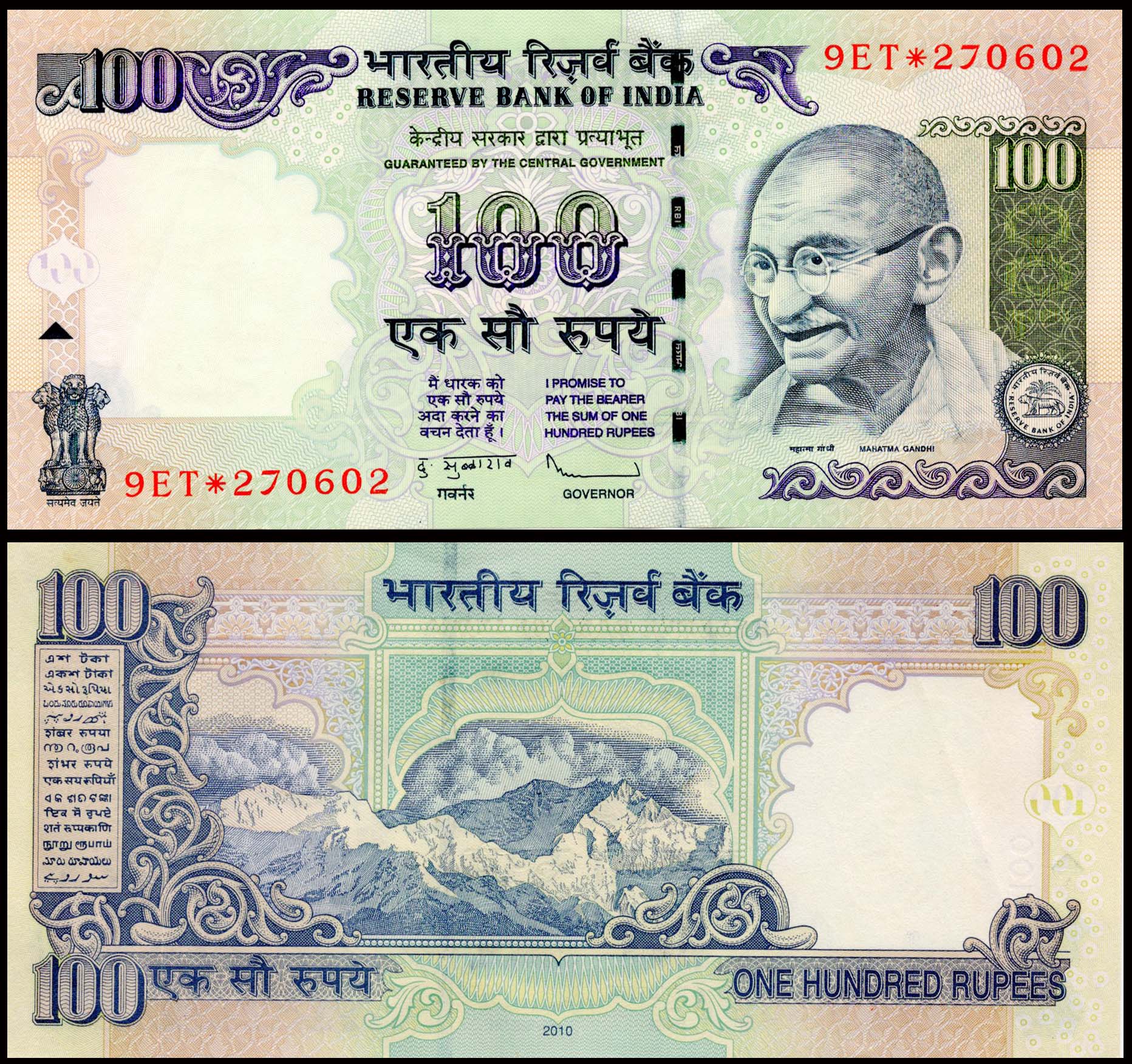 India 100 Rupees Governor Duvvuri Subbarao 9 ET* Fine (Star⭐) Banknote