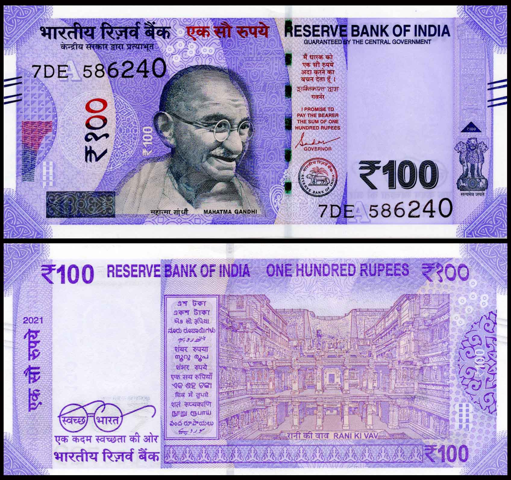 India 100 Rupees Governor Shakthikanta Dhas 7 DE Fine Banknote