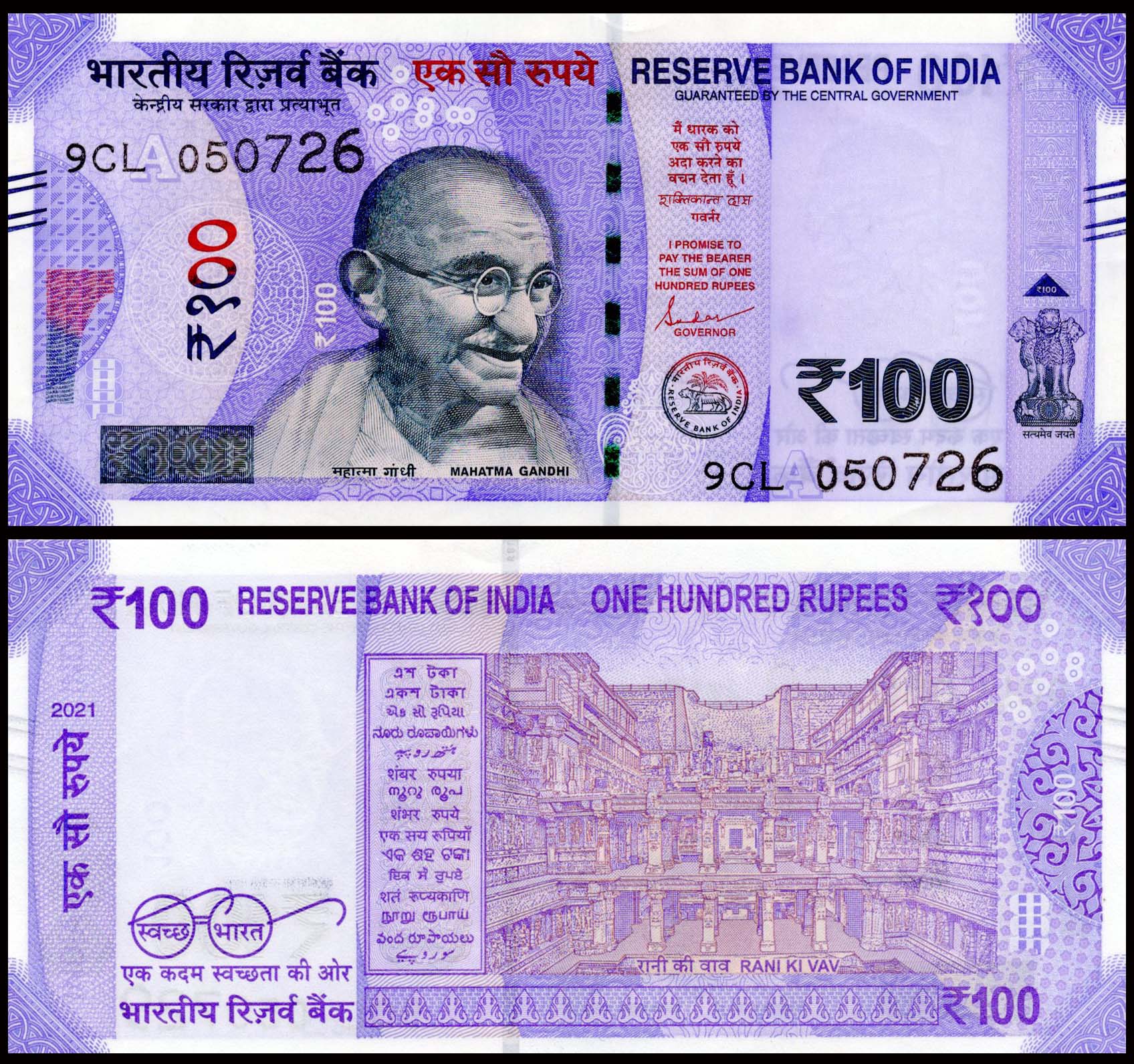 India 100 Rupees Governor Shakthikanta Dhas 9 CL Fine Banknote