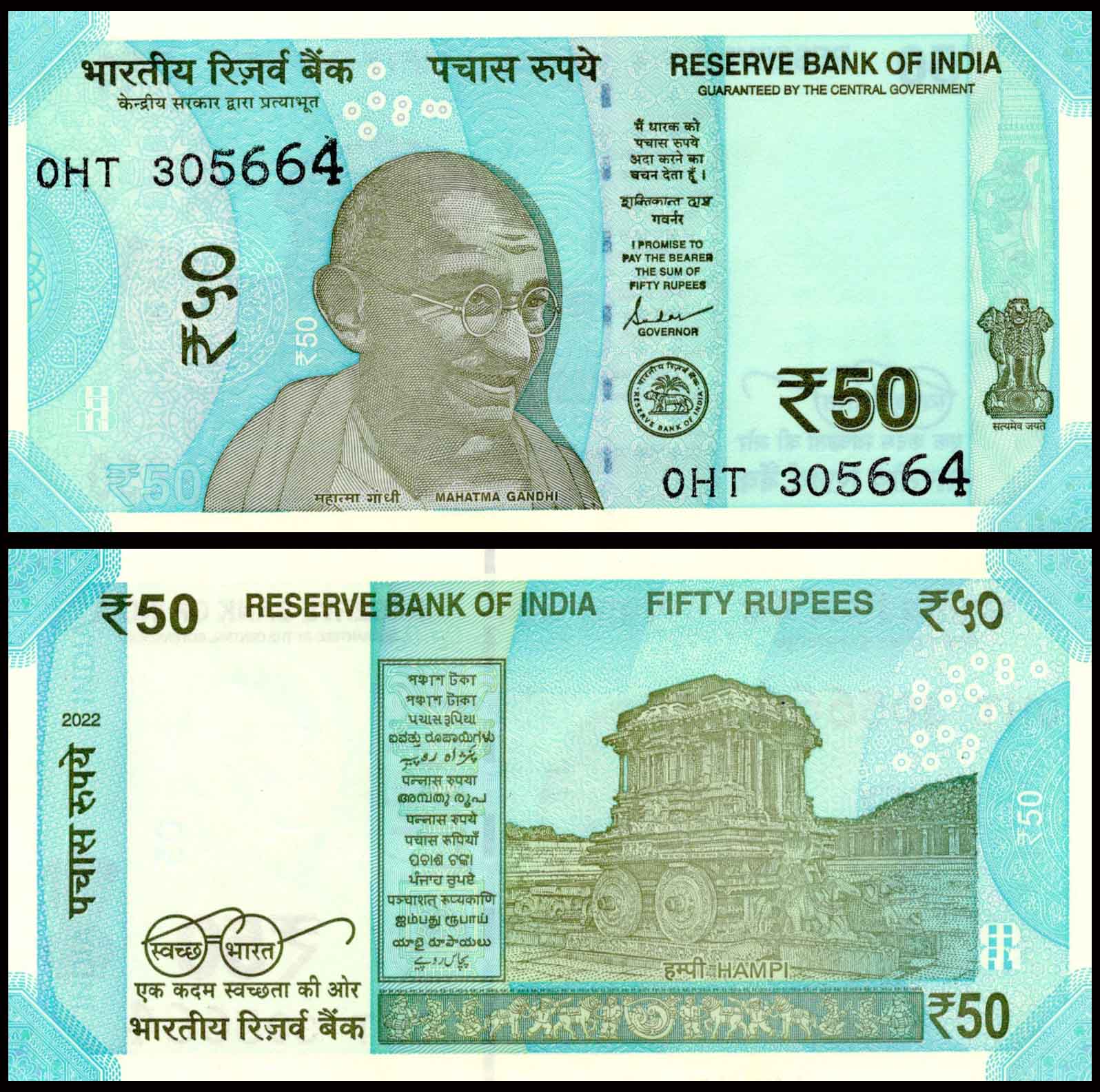 India 50 Rupees Governor Shakthikanta Dhas 2022 Used Banknote