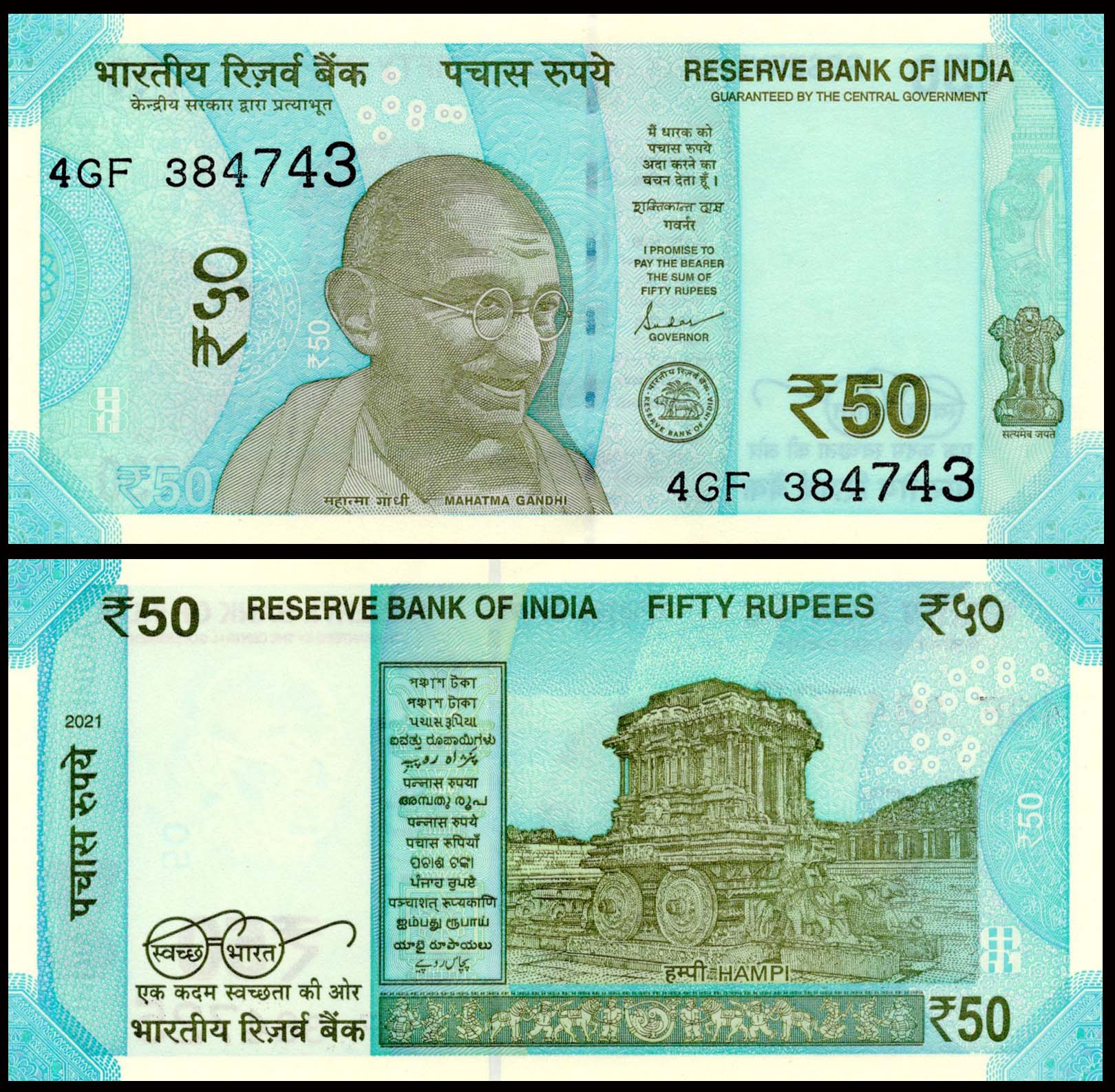 India 50 Rupees Governor Shakthikanta Dhas 4GF Fine Banknote