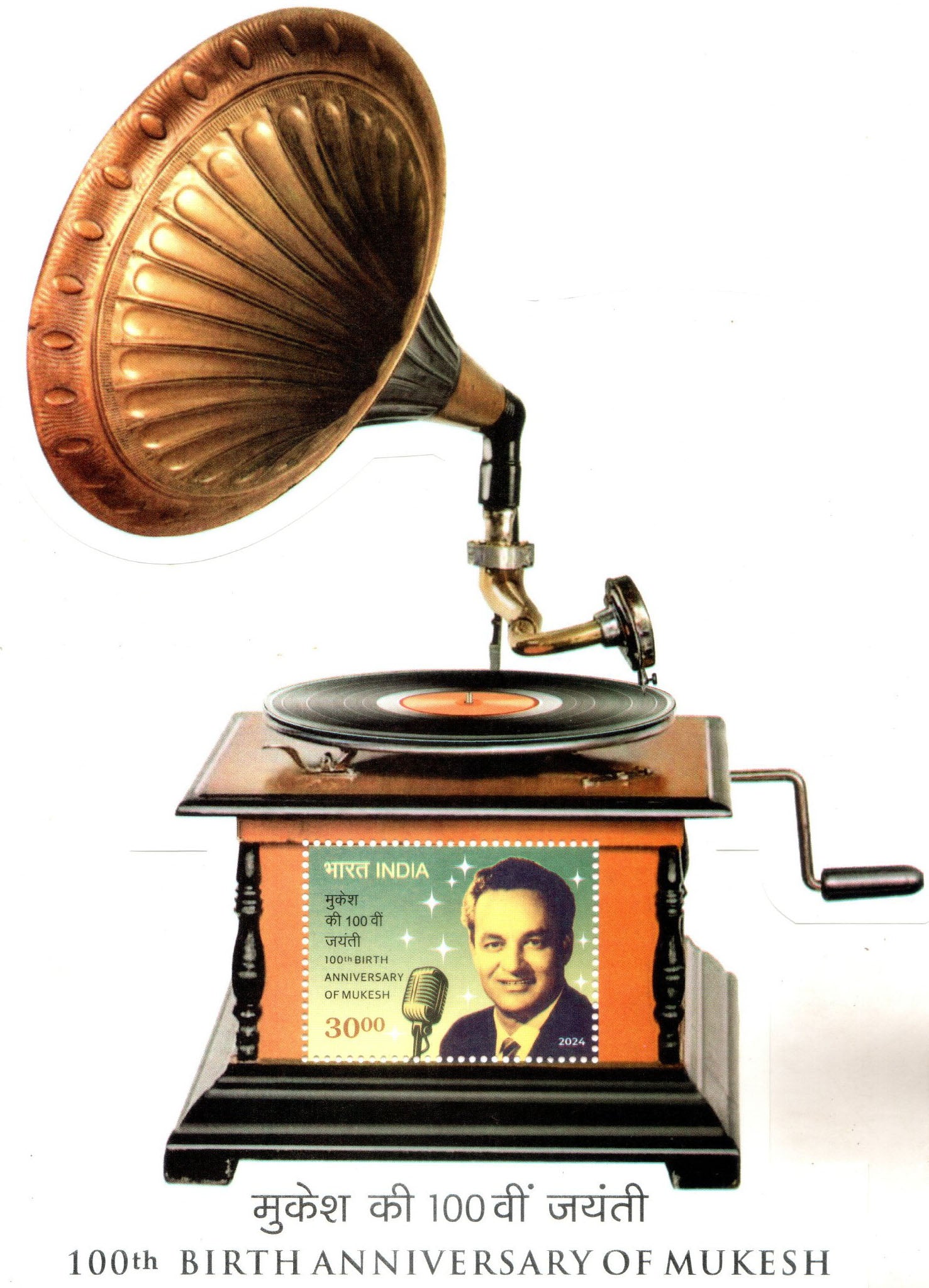 India 2024 Mukesh Music Singer Unique Unusual die-Cut Miniature Sheet