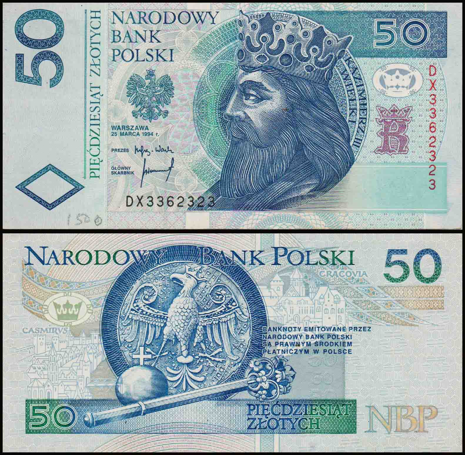 Poland 50 Zlotych banknote - King Kazimierz III Wielki used