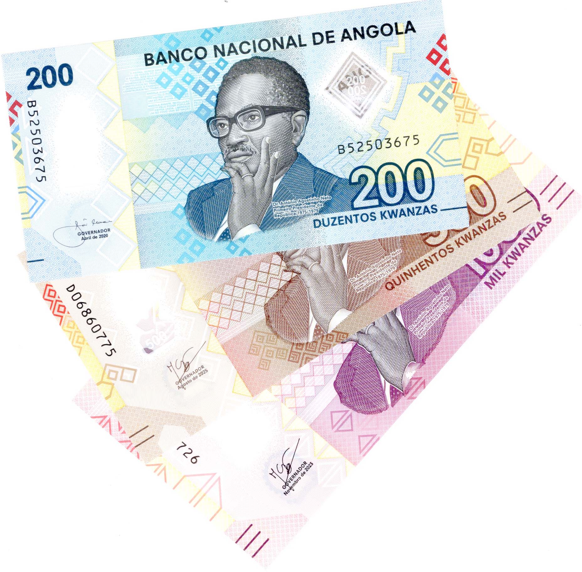 Angola 200 , 500 ,1000 Kwanzas Fine Polymer Banknotes