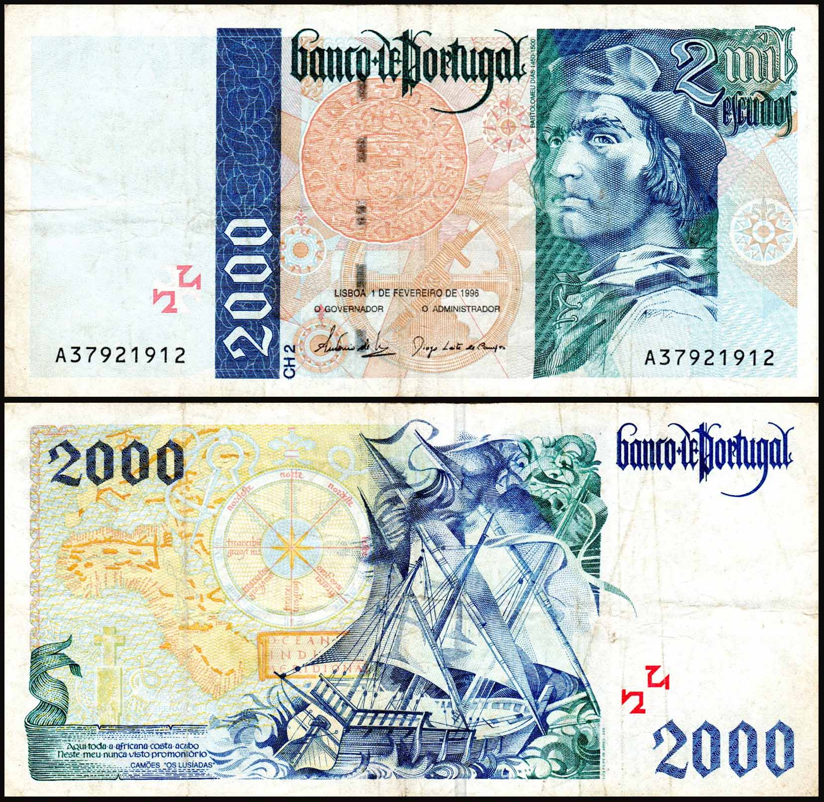 Portugal 2000 Escudos Used Banknote