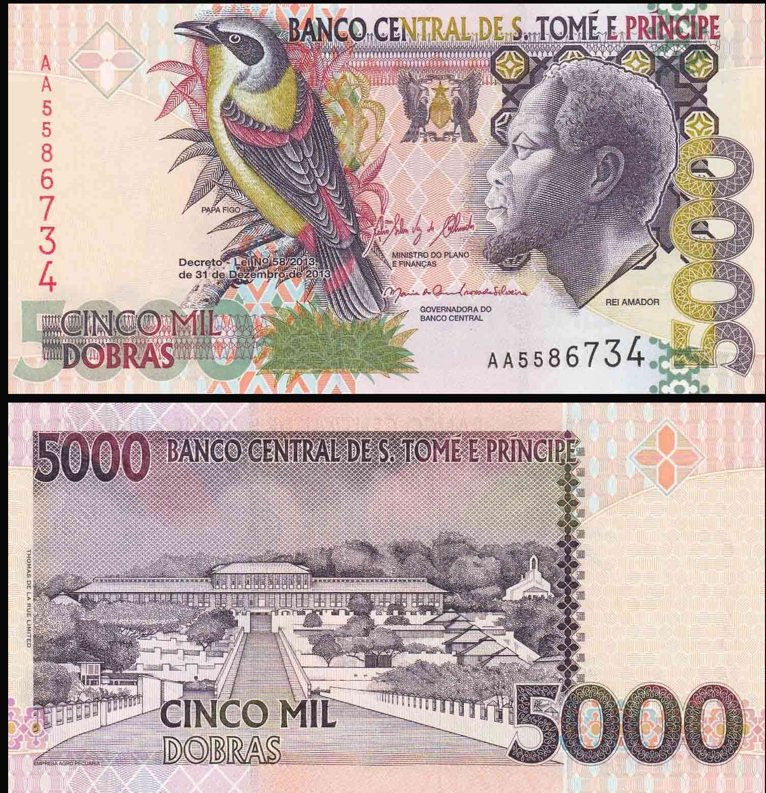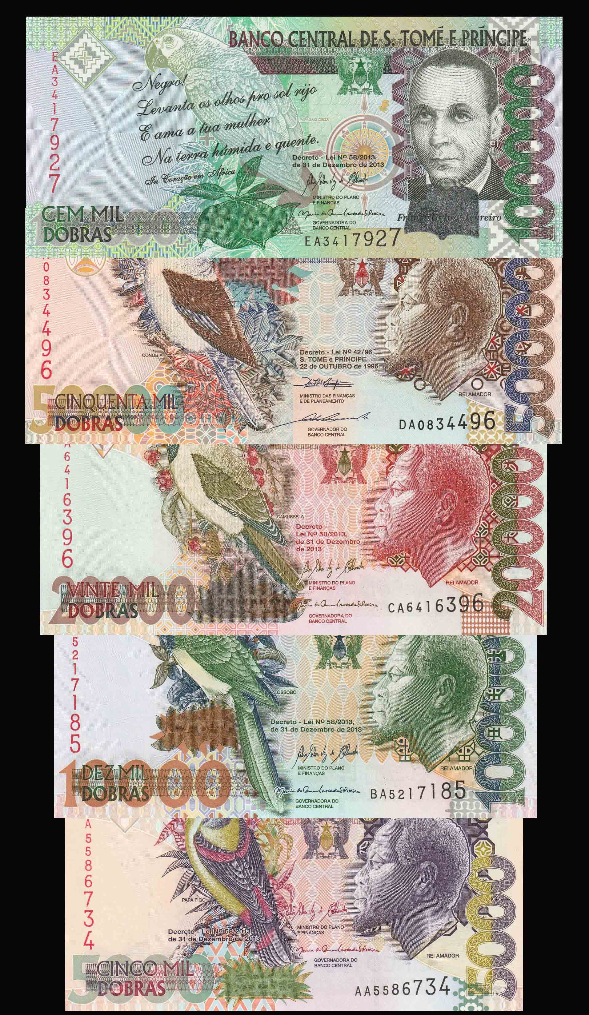 Sao Thomas Principe 5000, 10000, 20000, 50000, 100000 Dobras UNC Set 5 Pcs Banknote