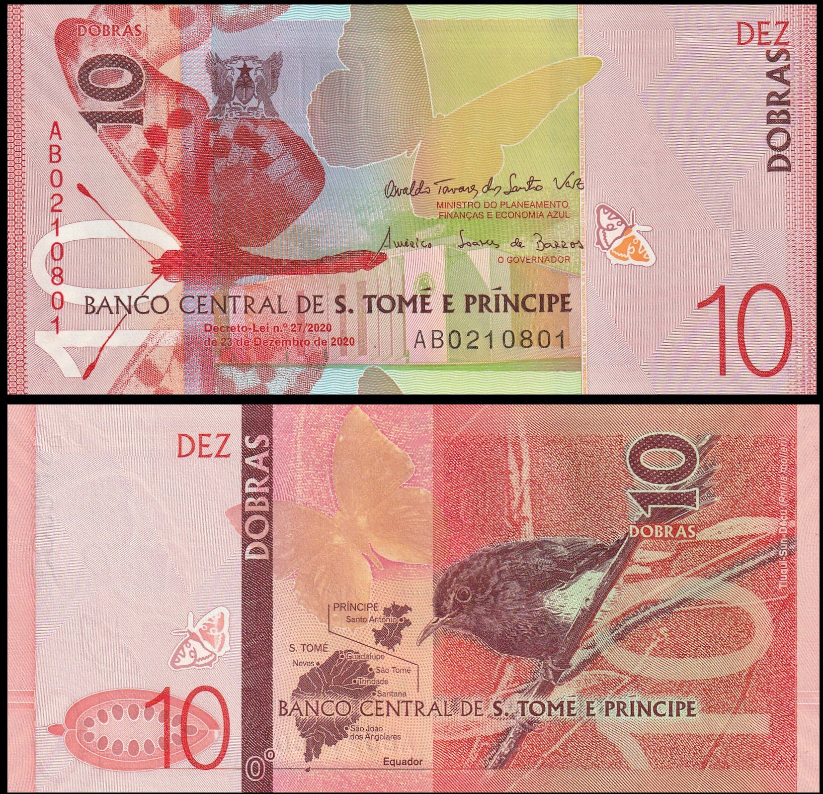 São Tomé and Príncipe 10 Dobras Very Fine Banknote