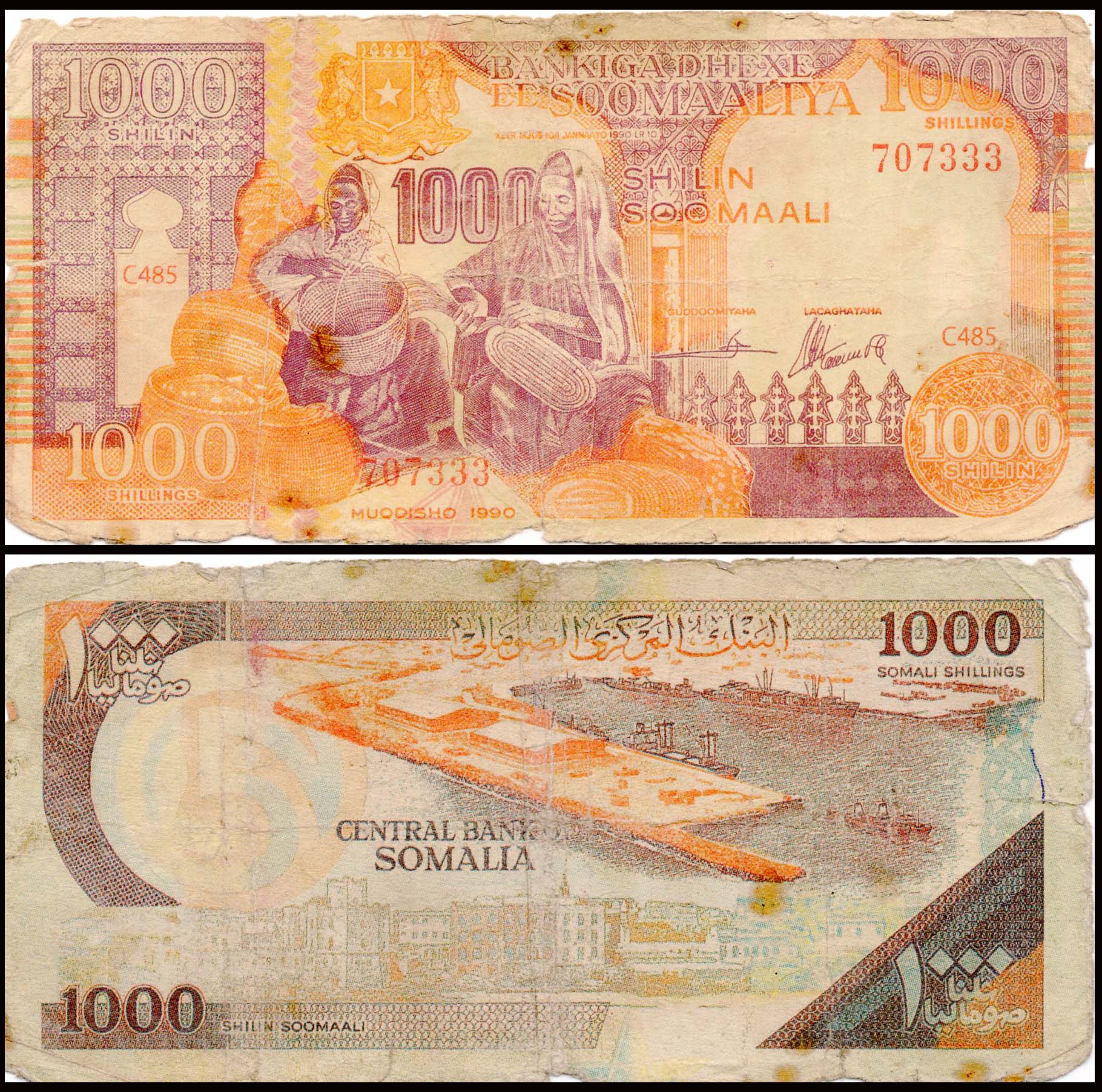 Somaliya 1000 Shillings Very Used & Damaged Banknote