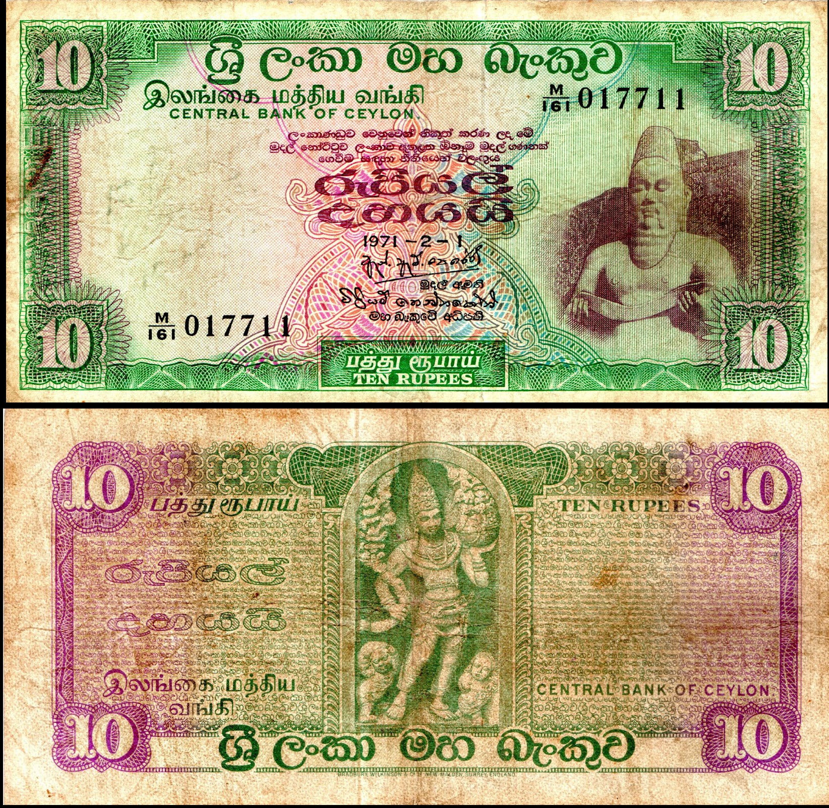 Ceylon 10 Rupees 1971-2-1 Used Banknote
