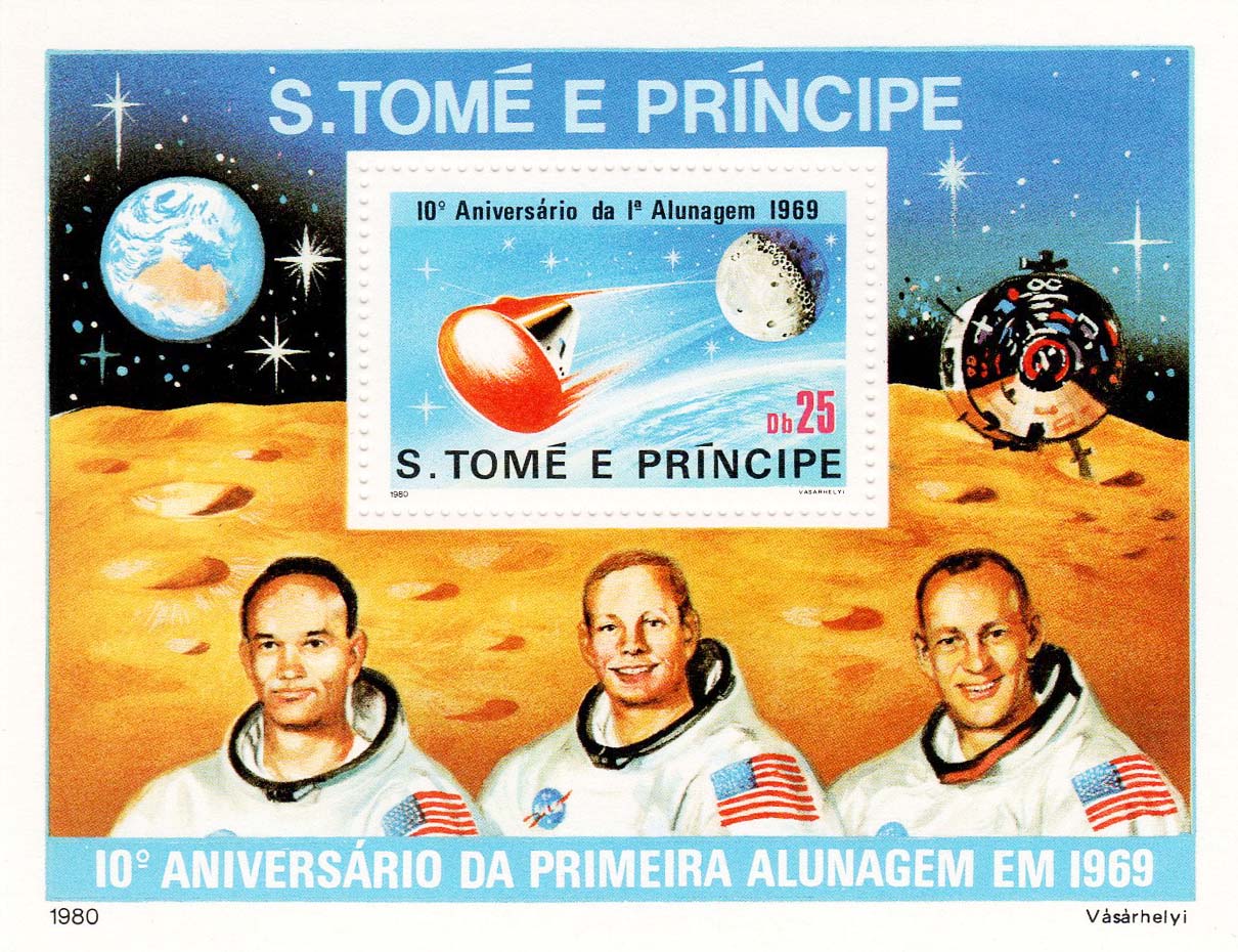 St .Tome Principe Moon Landing 3 Astronauts Miniature Sheet