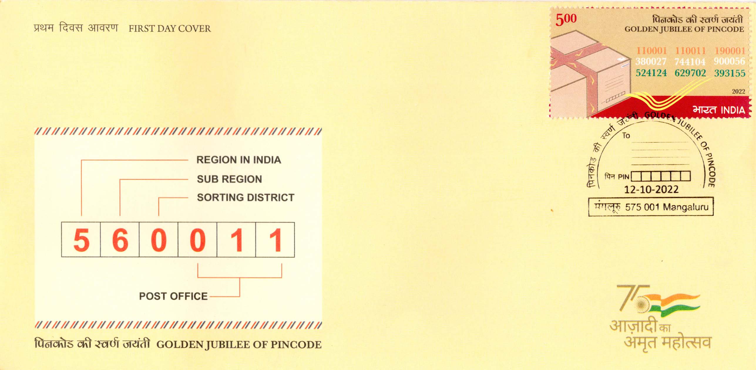 India Golden Jubilee of Pincode Fdc