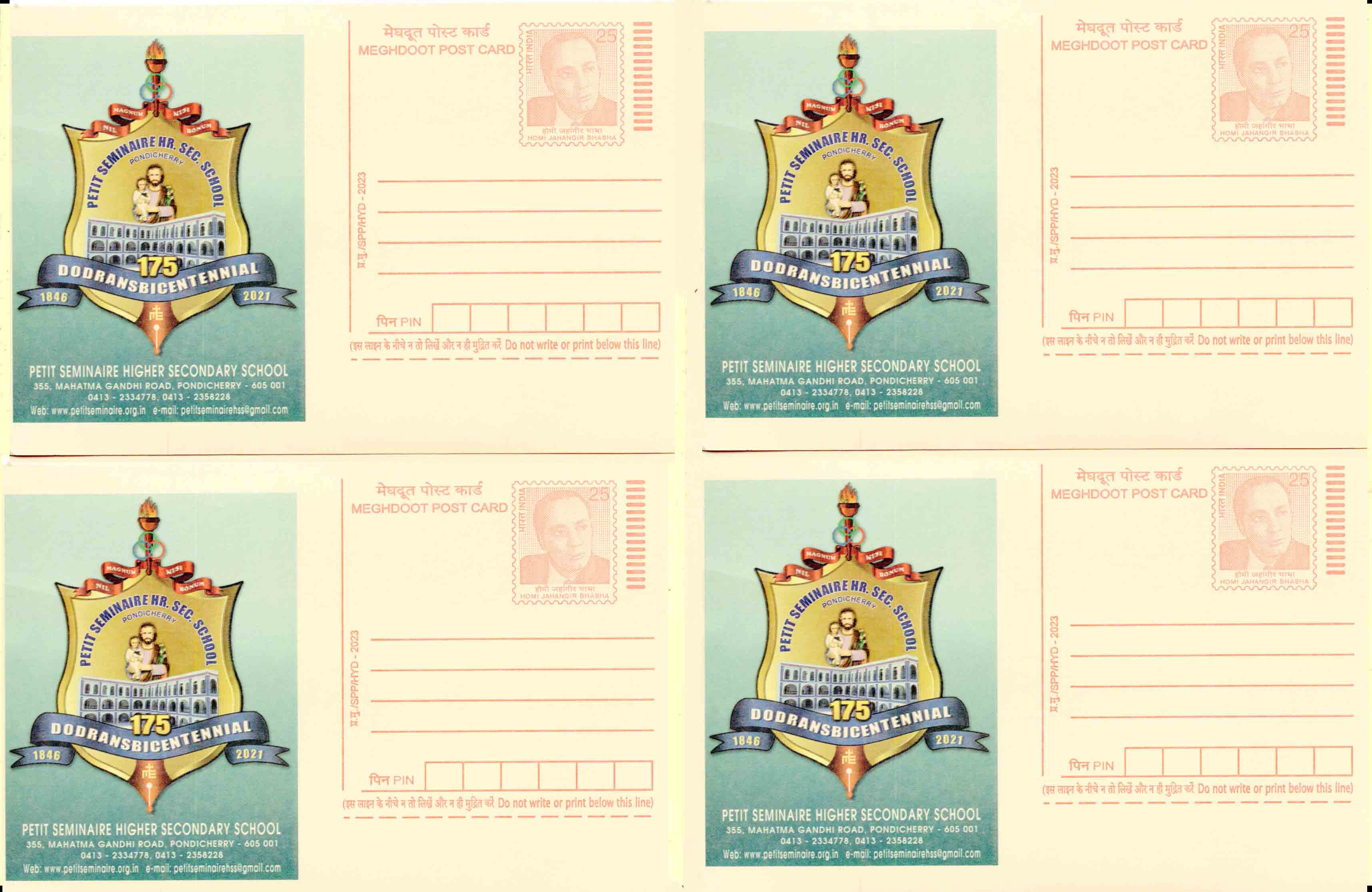 India Petit Seminaire Higher Secondary School in Puducherry Post Card ( 4 Pieces)