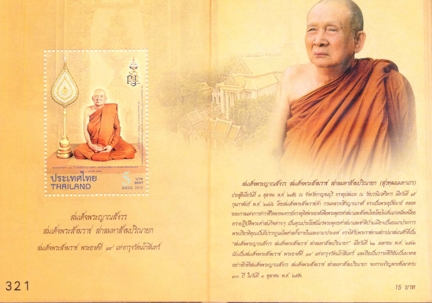 Thailand 100th Birthday of His Holiness Somdet Phra Nyanasamvara, Supreme Patriarch Miniature Sheet