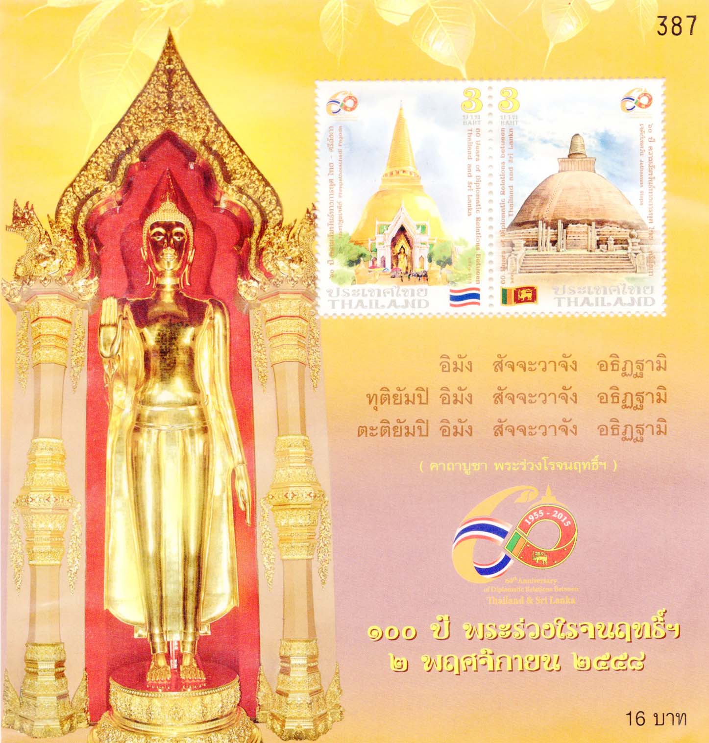 Thailand Buddist Site - Stupa Miniature Sheet