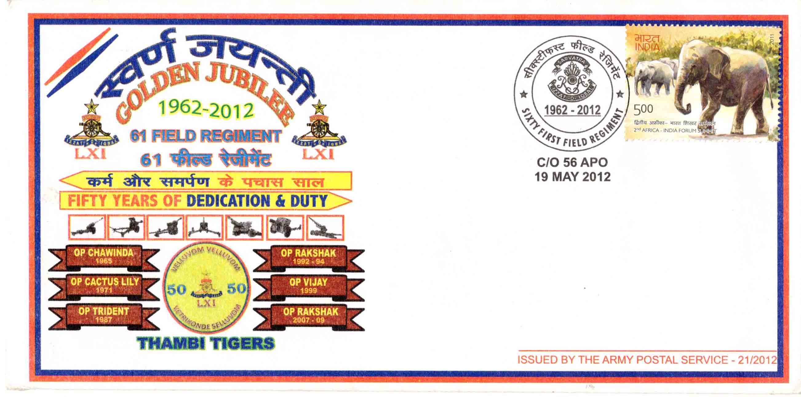 India 61 Field Regiment The Army Postal Service Cover