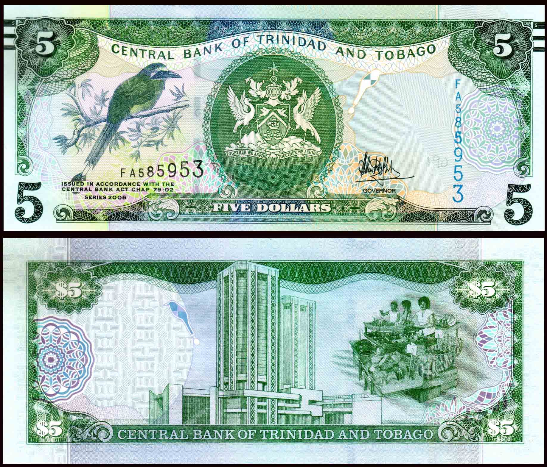 Trinidad & Tobago 5 Dollars Very Fine Banknote
