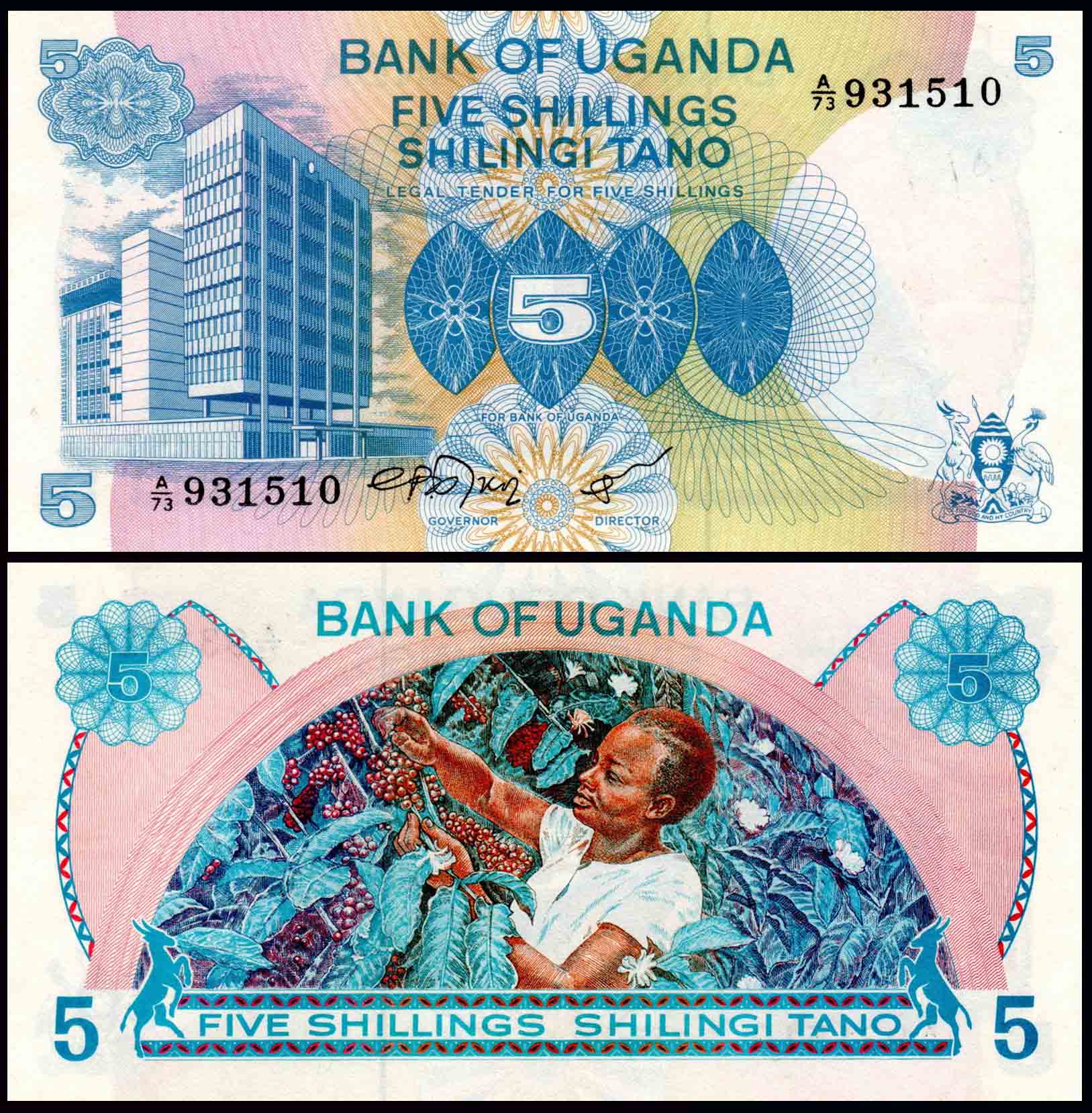 Uganda 5 Shillings Fine Banknote