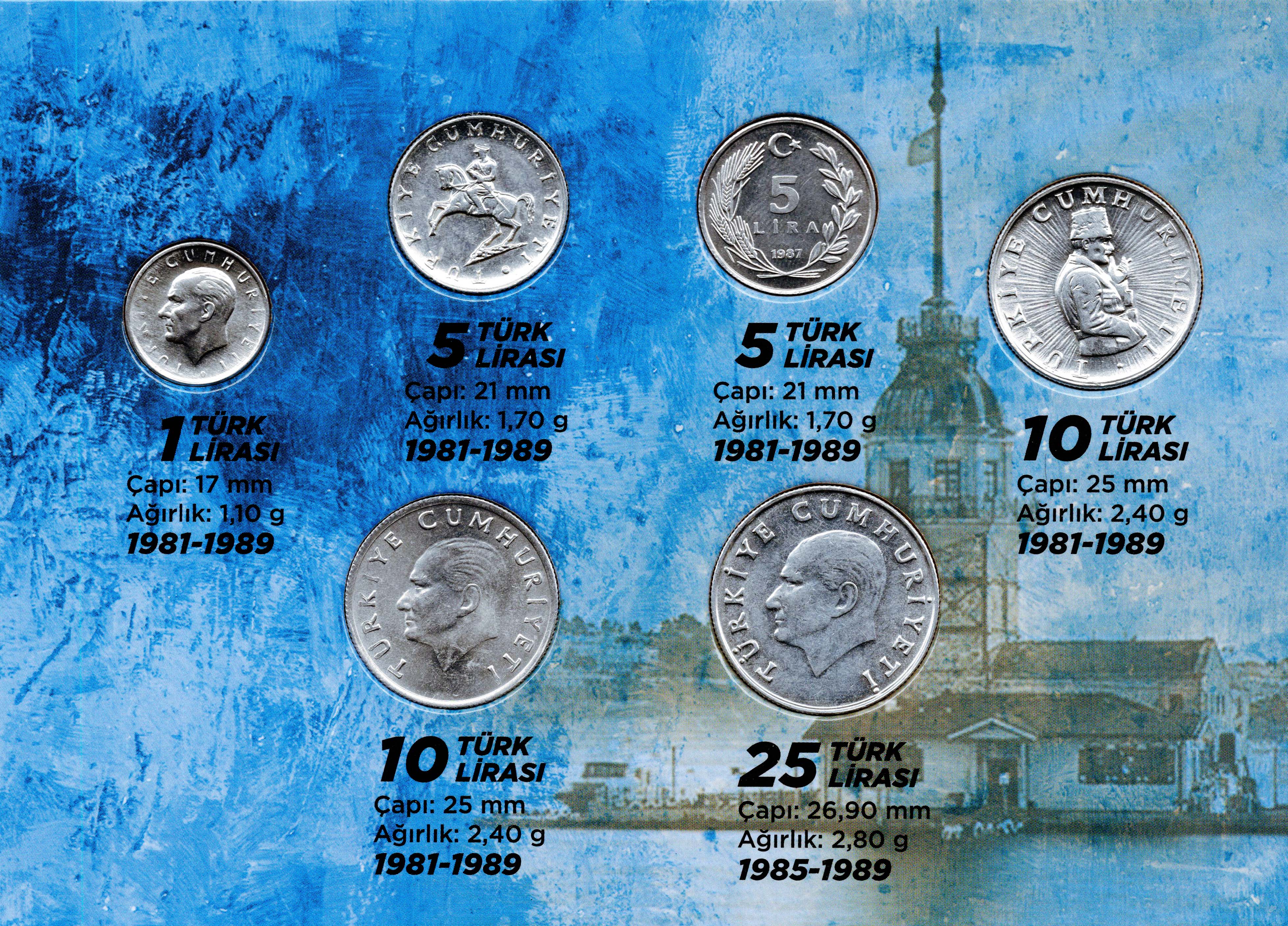 Turkey 1,5,5,10,10,25 Lira Set Coins (M132)