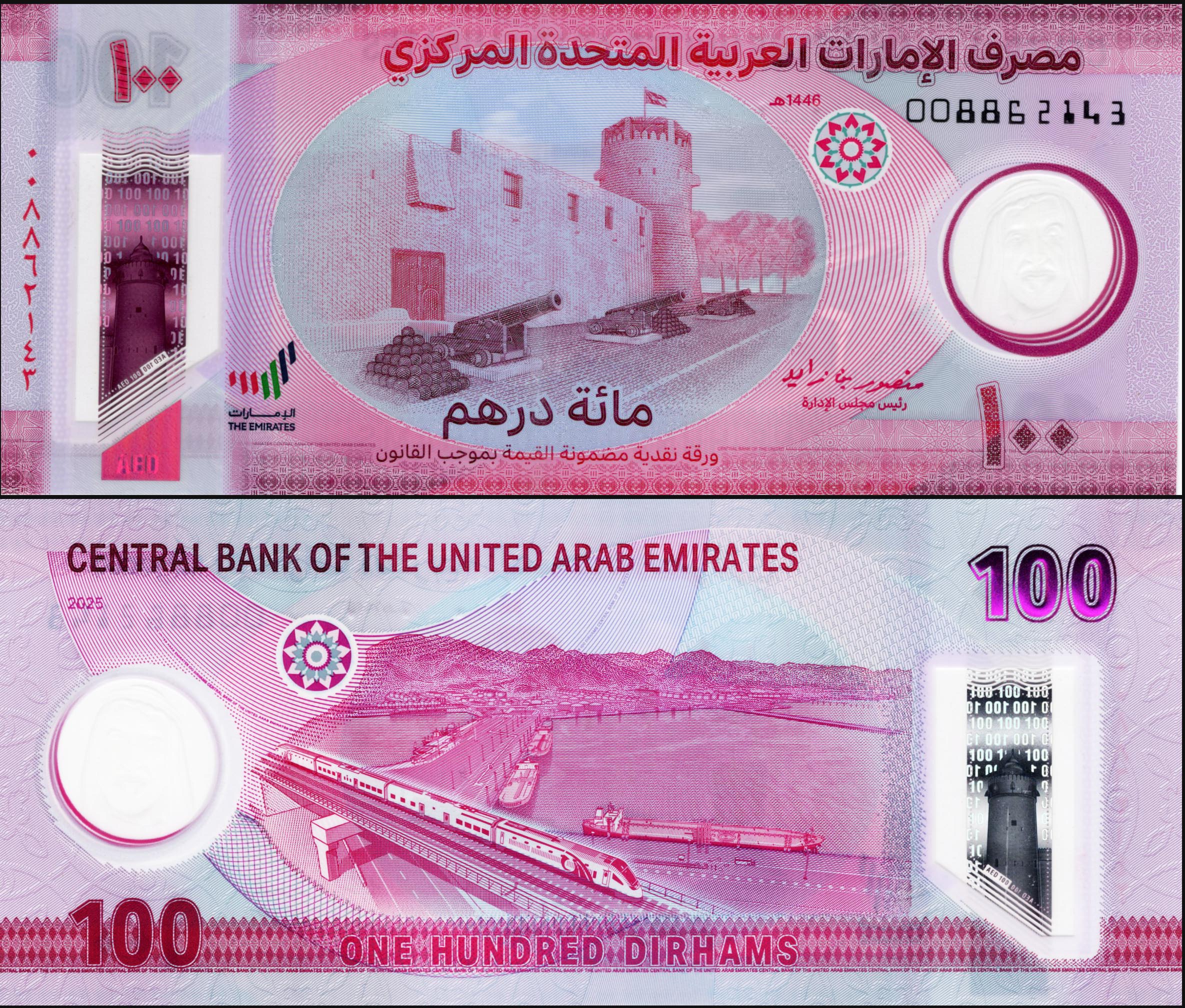 United Arab Emirates 100 Dirhams 2025 Used Polymer Banknote