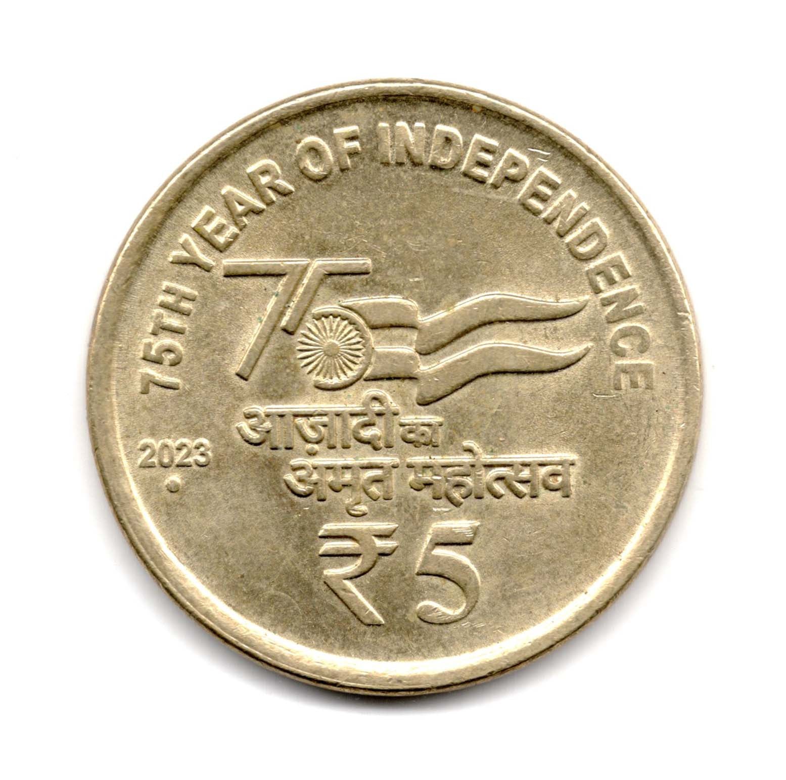 India 75th Year Of Independence 5 Rupees Used Coin Year 2023