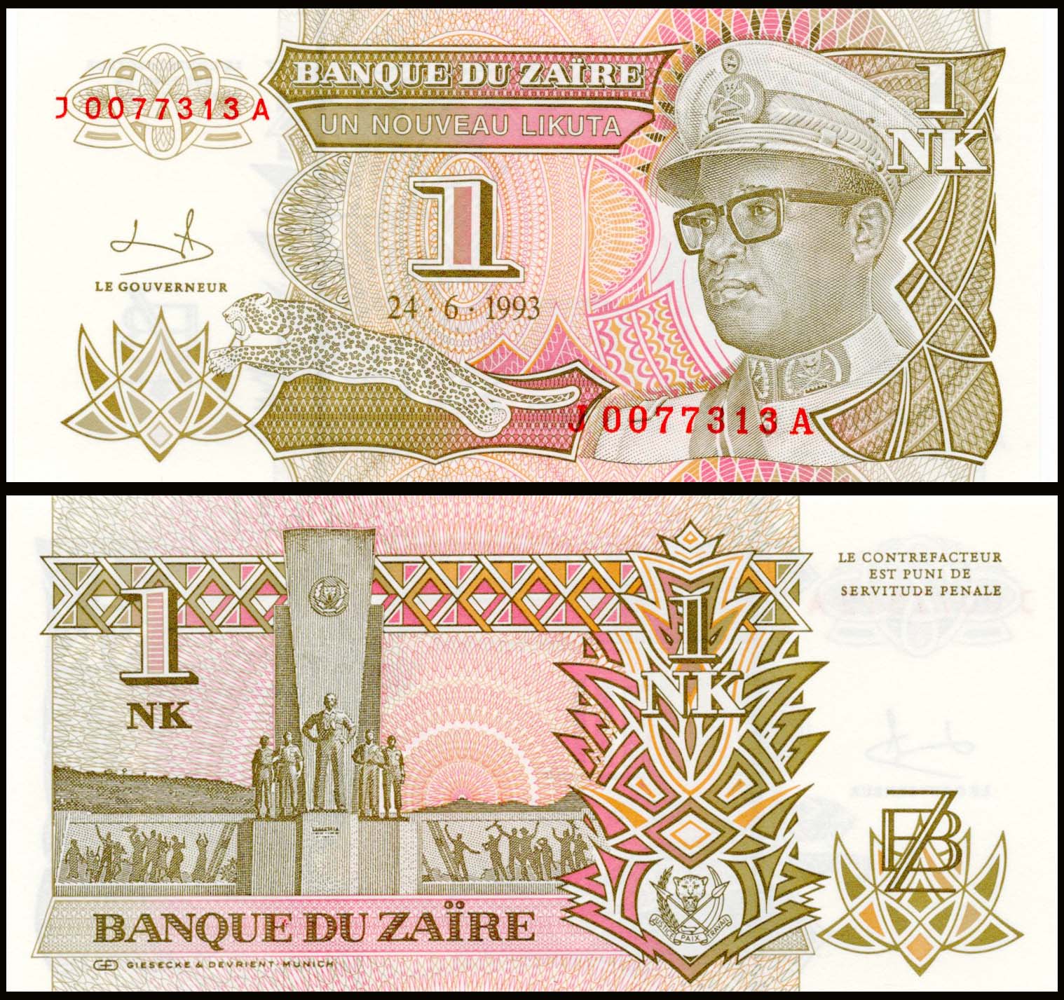 Zaire 1 Likuta UNC P47(U) Banknote M150