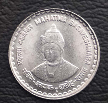Mahatma Basaveshwara 5 Rupees--used Ferratic stalinless Steel coin (Bombay Mint)