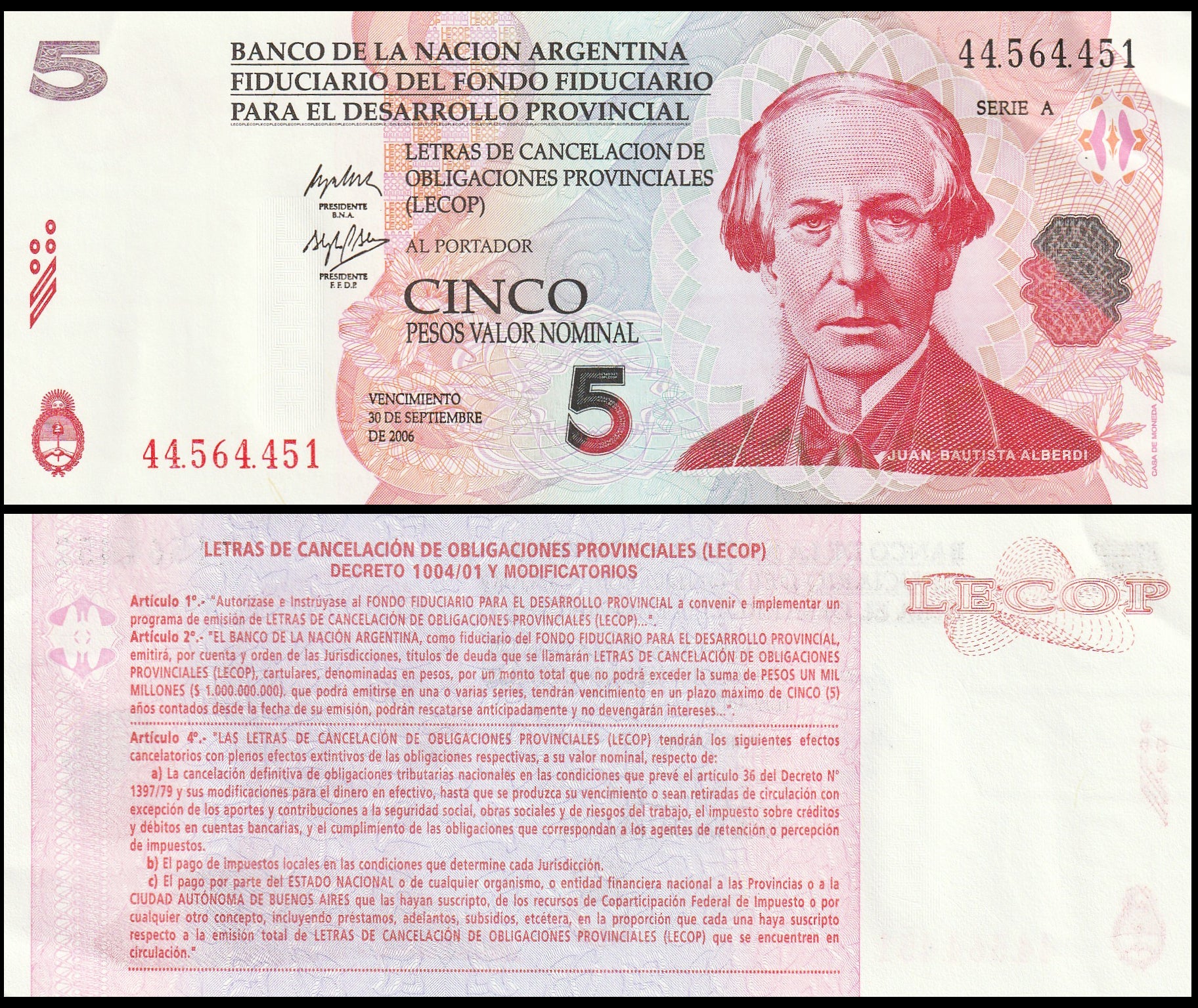 Argentina 5 Pesos Valor Nominal UNC Banknote