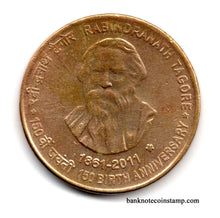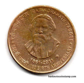 India 5 Rupees Rabindranath Tagore Used Coin