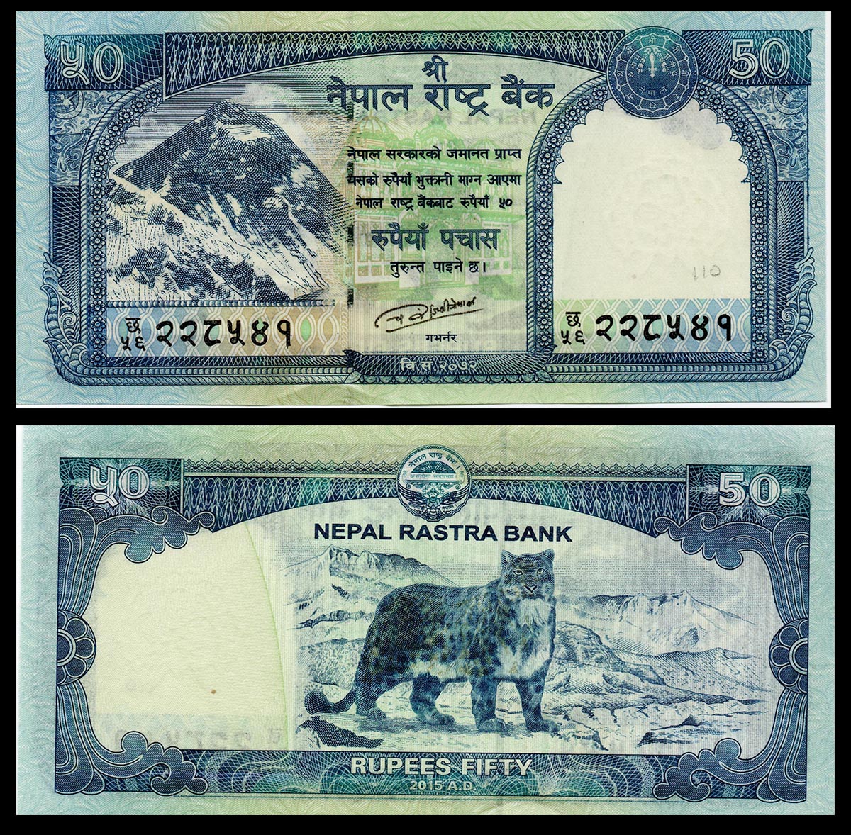 Nepal 50 Rupees- Mount Everest, Snow leopard Very Fine Banknote