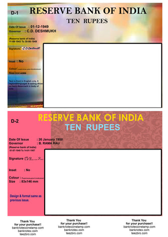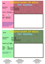 Ten Rupees Banknotes – Exhibition Printing Sheets D1 – D50