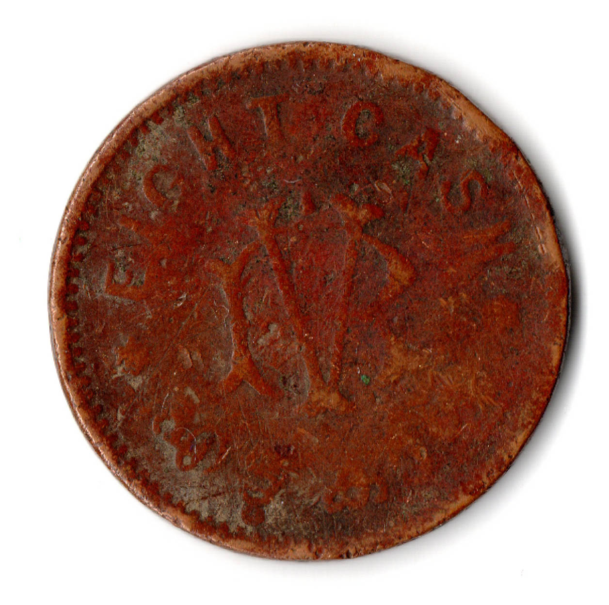 • Travancore India Princely State Eight Cash Bala Rama Varma King Old Coin (1924 - 1949)