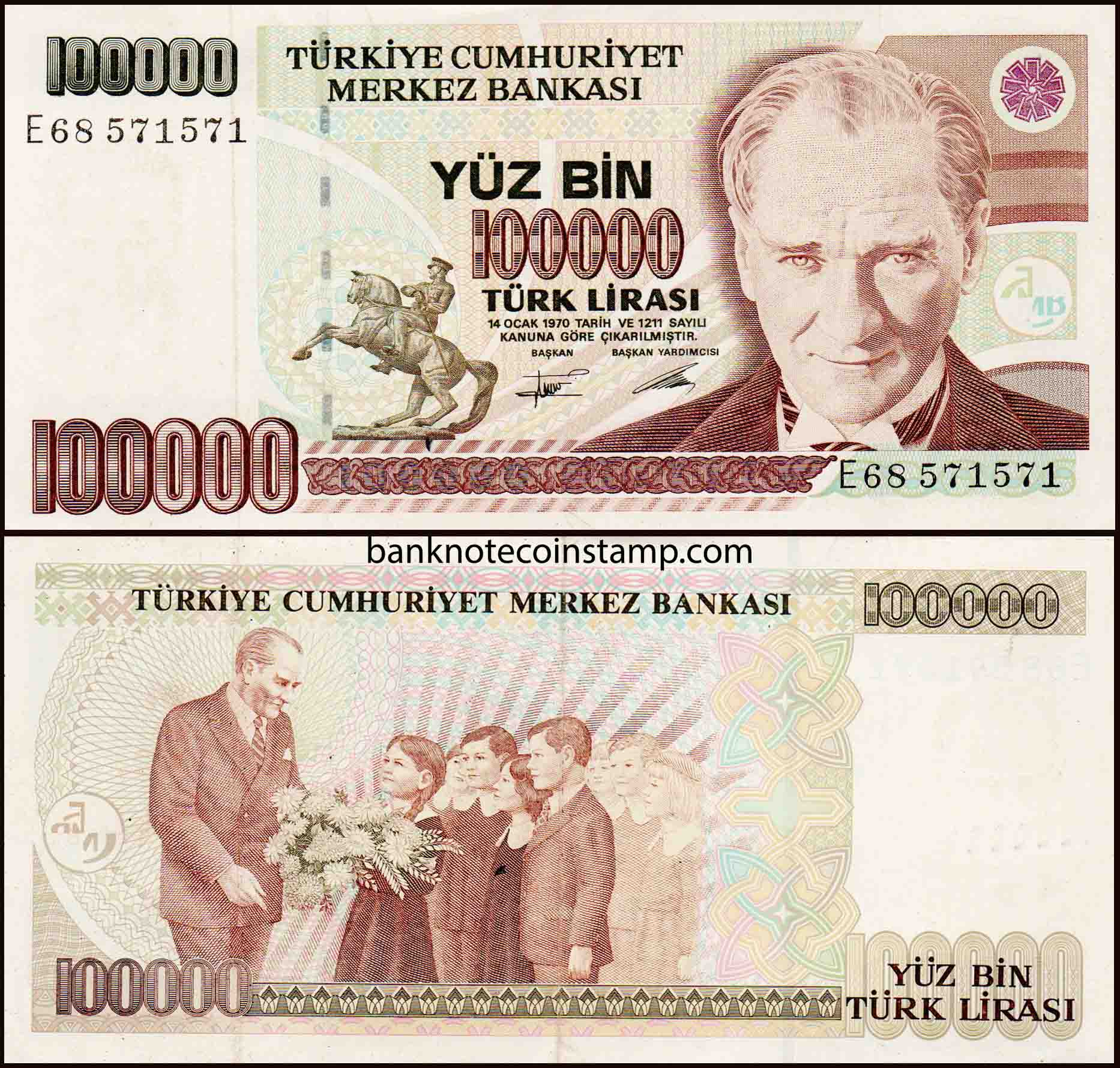 Turkey 100000 Turkish Lira B283(P205) Fine Banknote (M255)