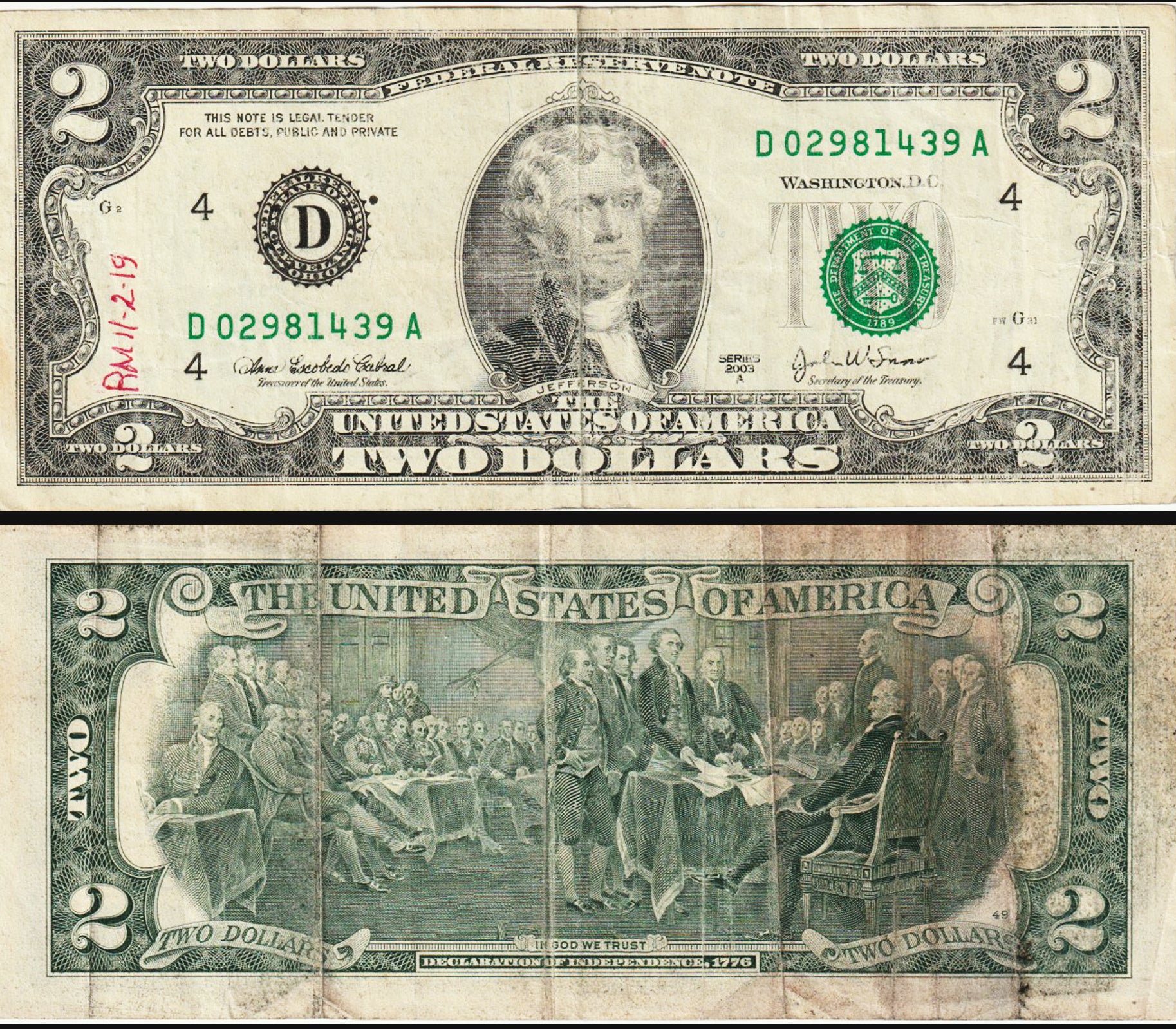 United States of America 2 Dollars Banknote – D Series Used Banknote